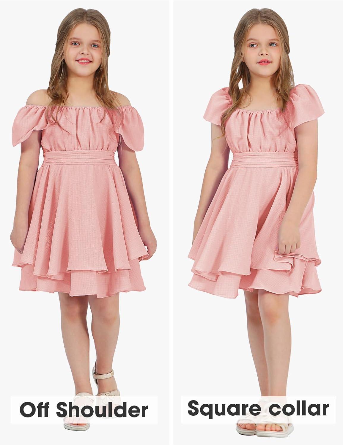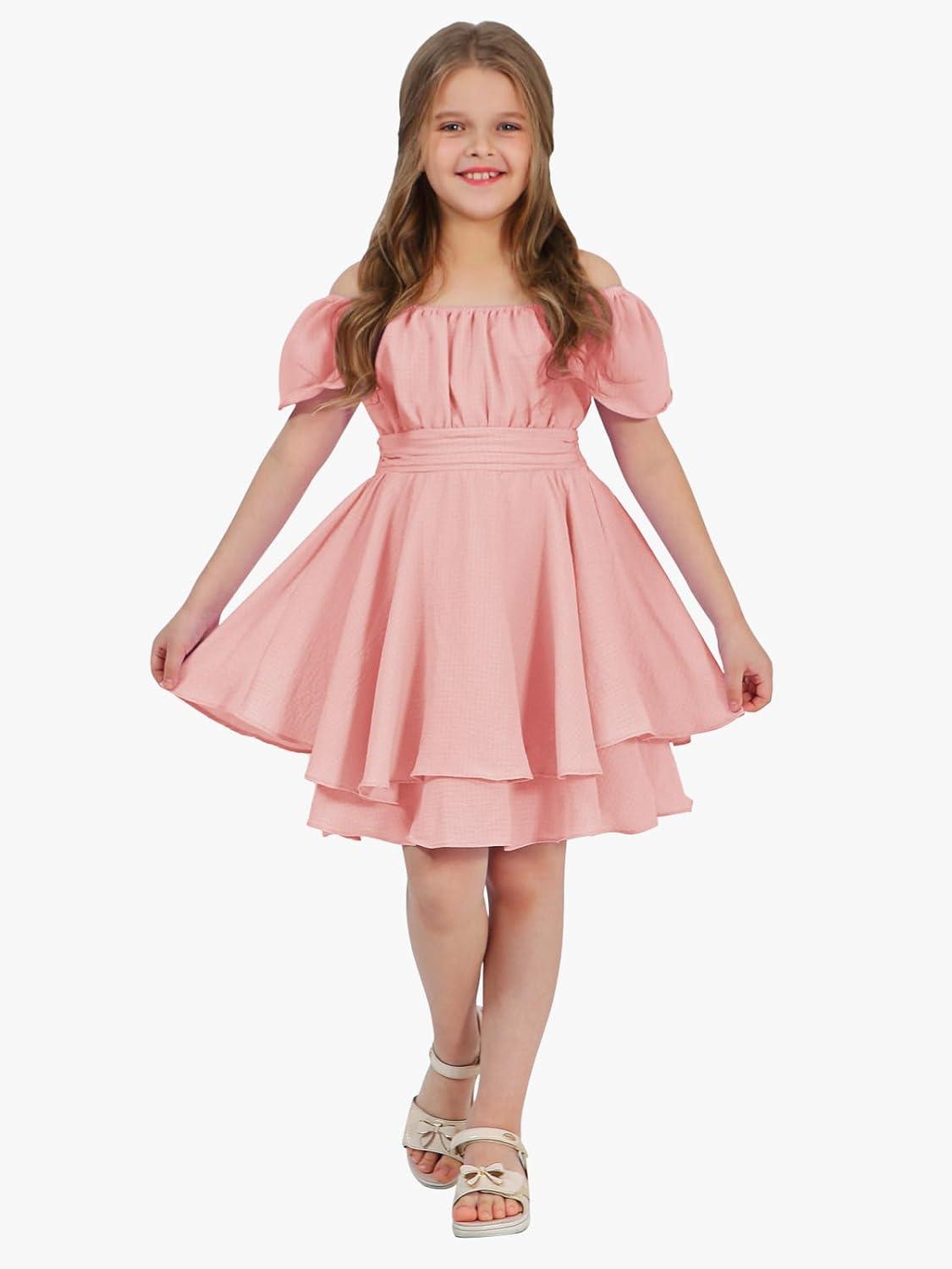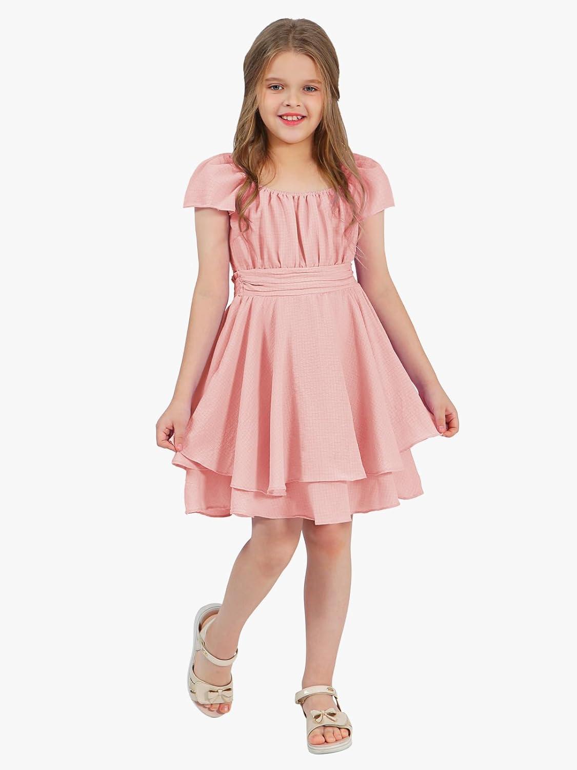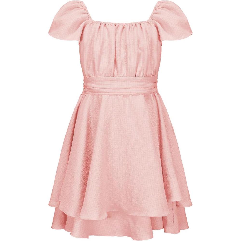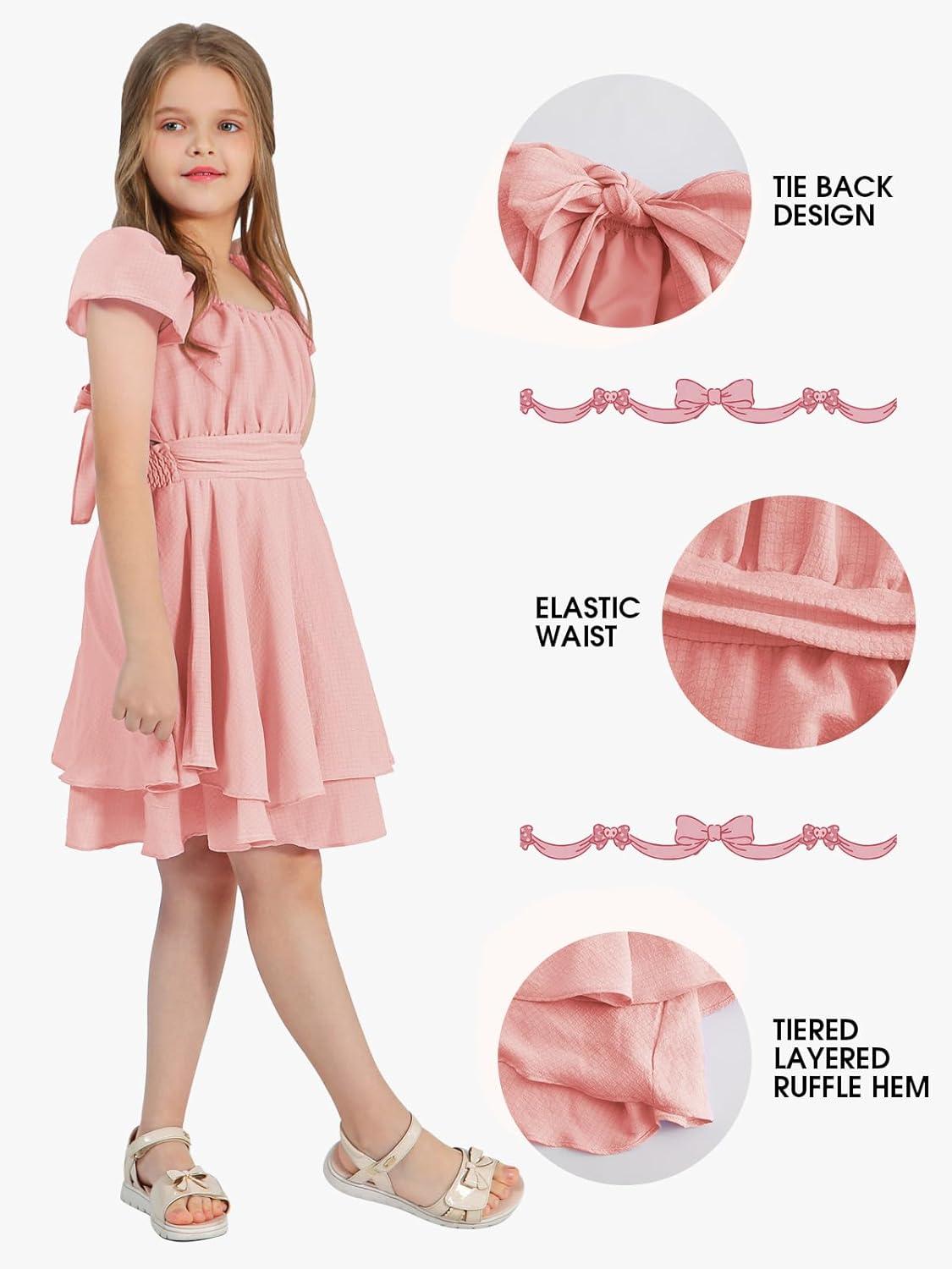 Get more for your money with our exclusive bundle deals on EXLURA Casual Short Cap Sleeve Girls Tie Back A Line Ruffle Hem Junior Teenage Kids Short Mini Dress Size 6-15 Years(Pink) and accessories.