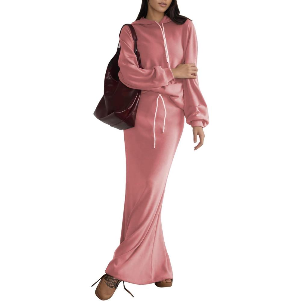 EXLURA Women 2 Piece Outfits Fall Airport Long Sleeve Hoodies Matching Long Skirt Dress Sweatsuits Lounge Sets Winter 2025(Peach Pink)