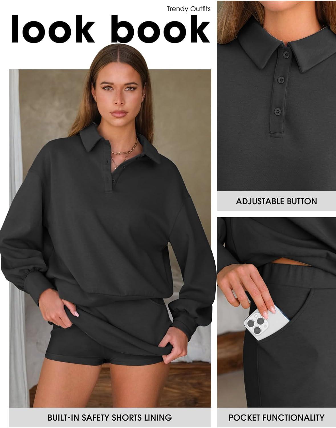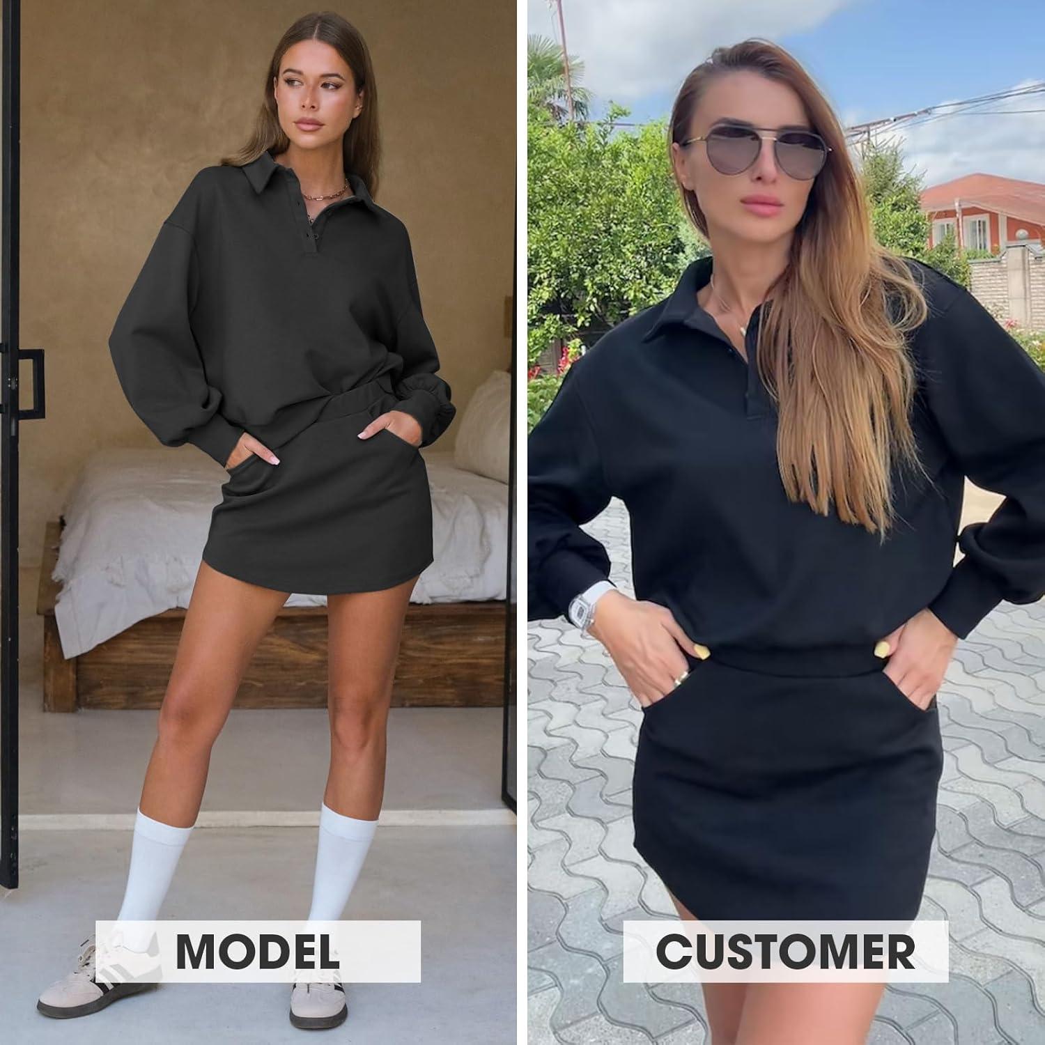 Be the first to review “EXLURA Women 2 Piece Outfits Fall Airport Polo Sweatshirt Skirt Set Skort Workout Sweatsuits Matching Travel Lounge Sets 2025(Black)”