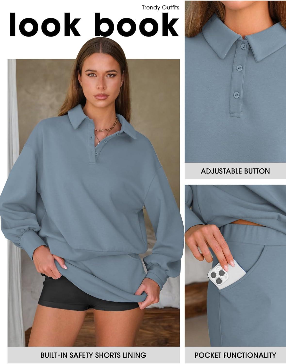 Be the first to review “EXLURA Women 2 Piece Outfits Fall Airport Polo Sweatshirt Skirt Set Skort Workout Sweatsuits Matching Travel Lounge Sets 2025(Grey Blue)”
