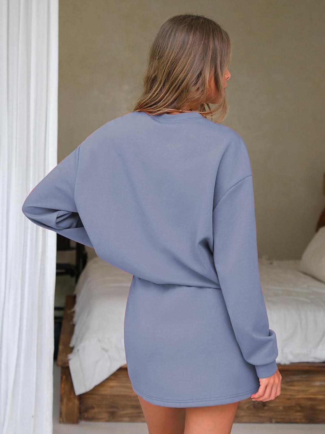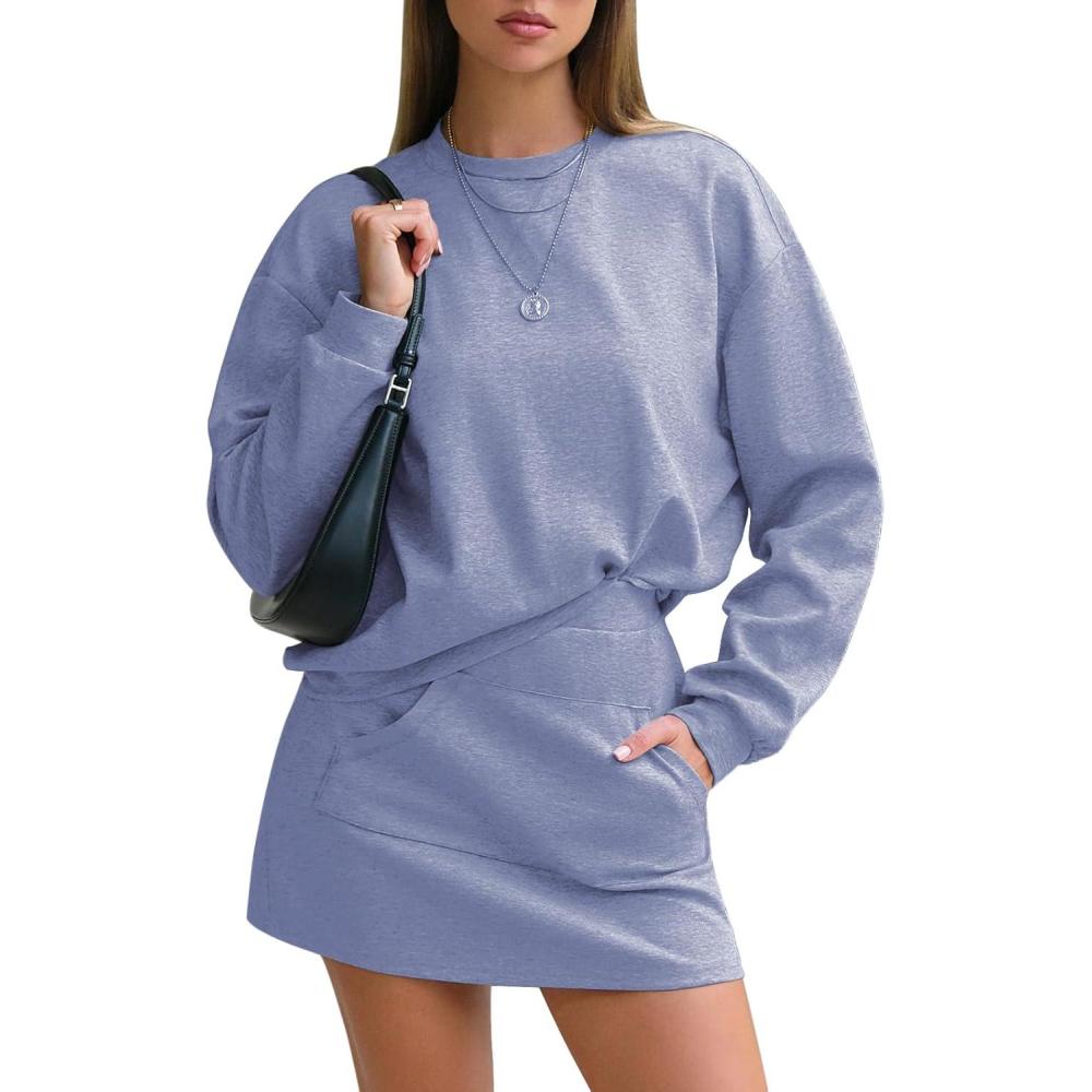 EXLURA Women 2 Piece Set Airport Outfit 2025 Fall Skirt Sets Cotton Travel Sweat Suit Casual Lounge Crewneck Sweatshirt Skort(Grey Blue)