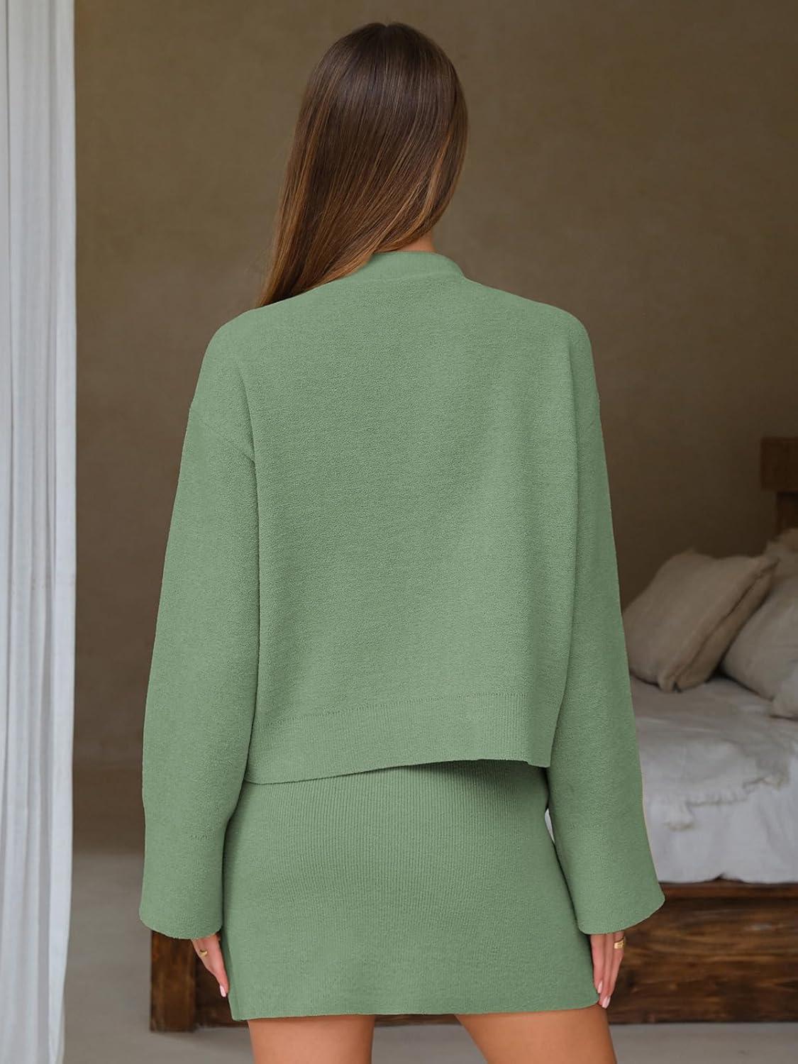 EXLURA Womens 2 Piece Skirt Sweater Sets V Neck Button Up Cardigan Mini Skirts Fall Winter Knit Trendy Outfits Pockets 2025(Dark Green)