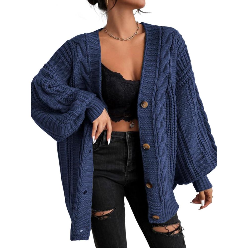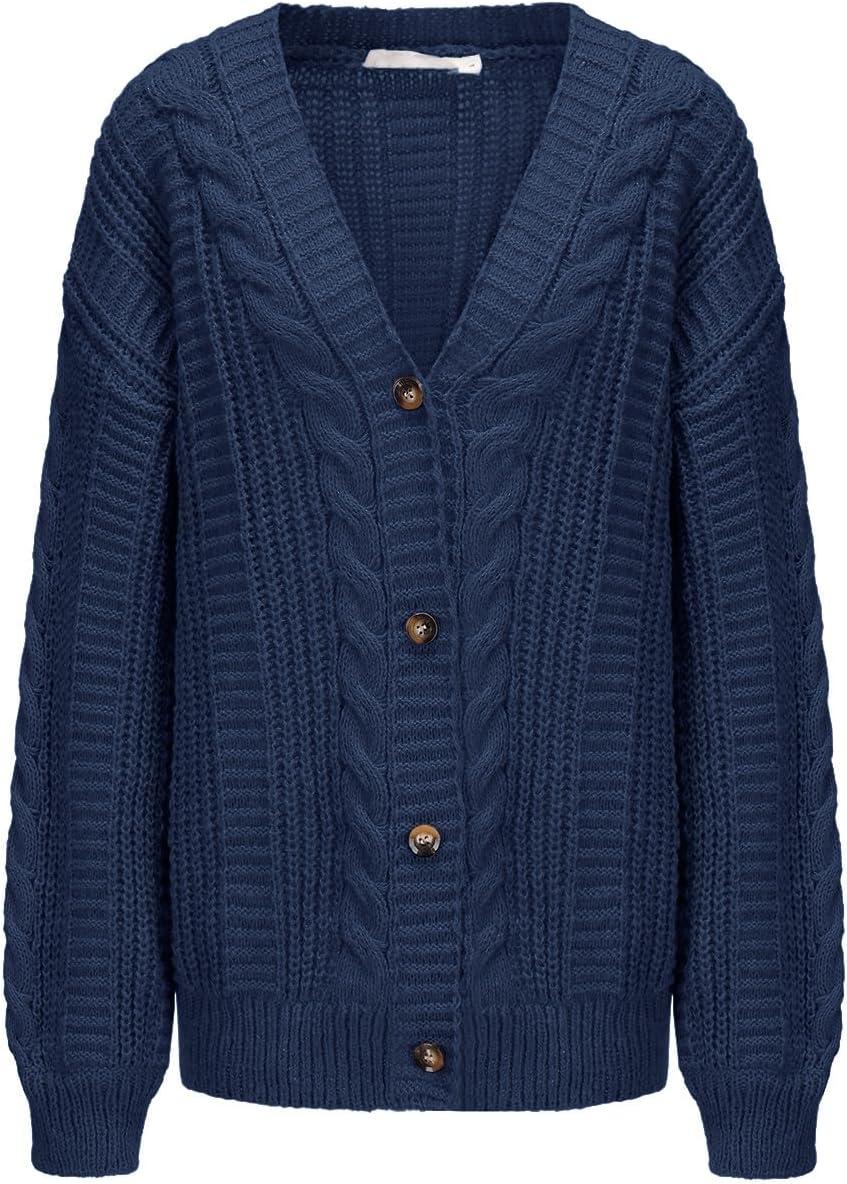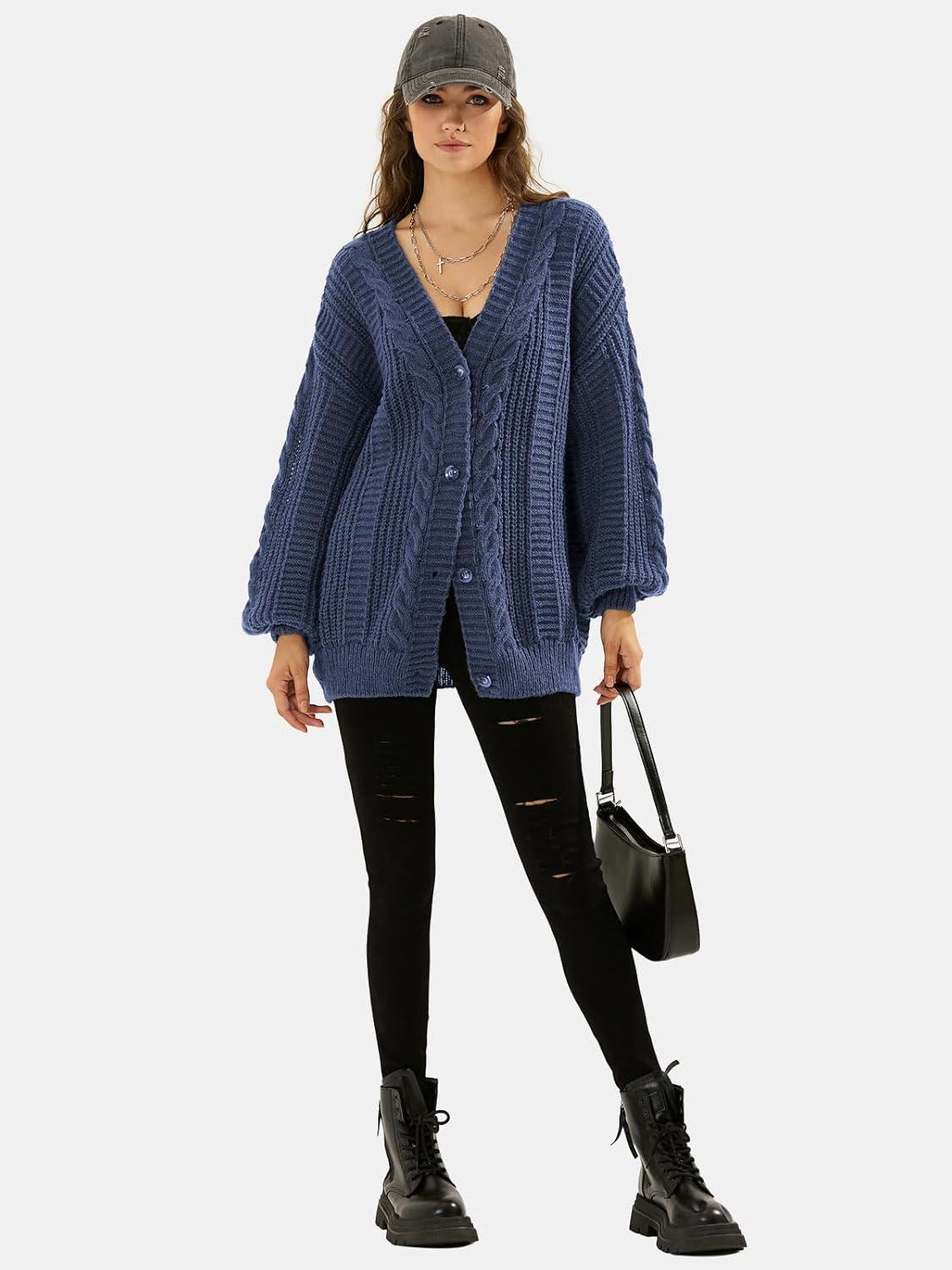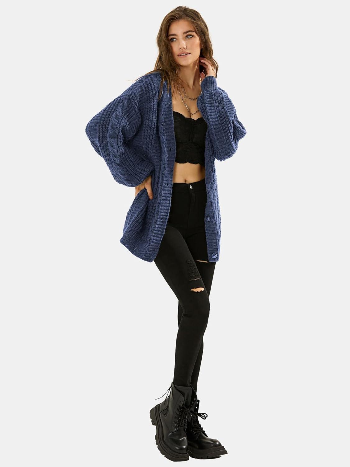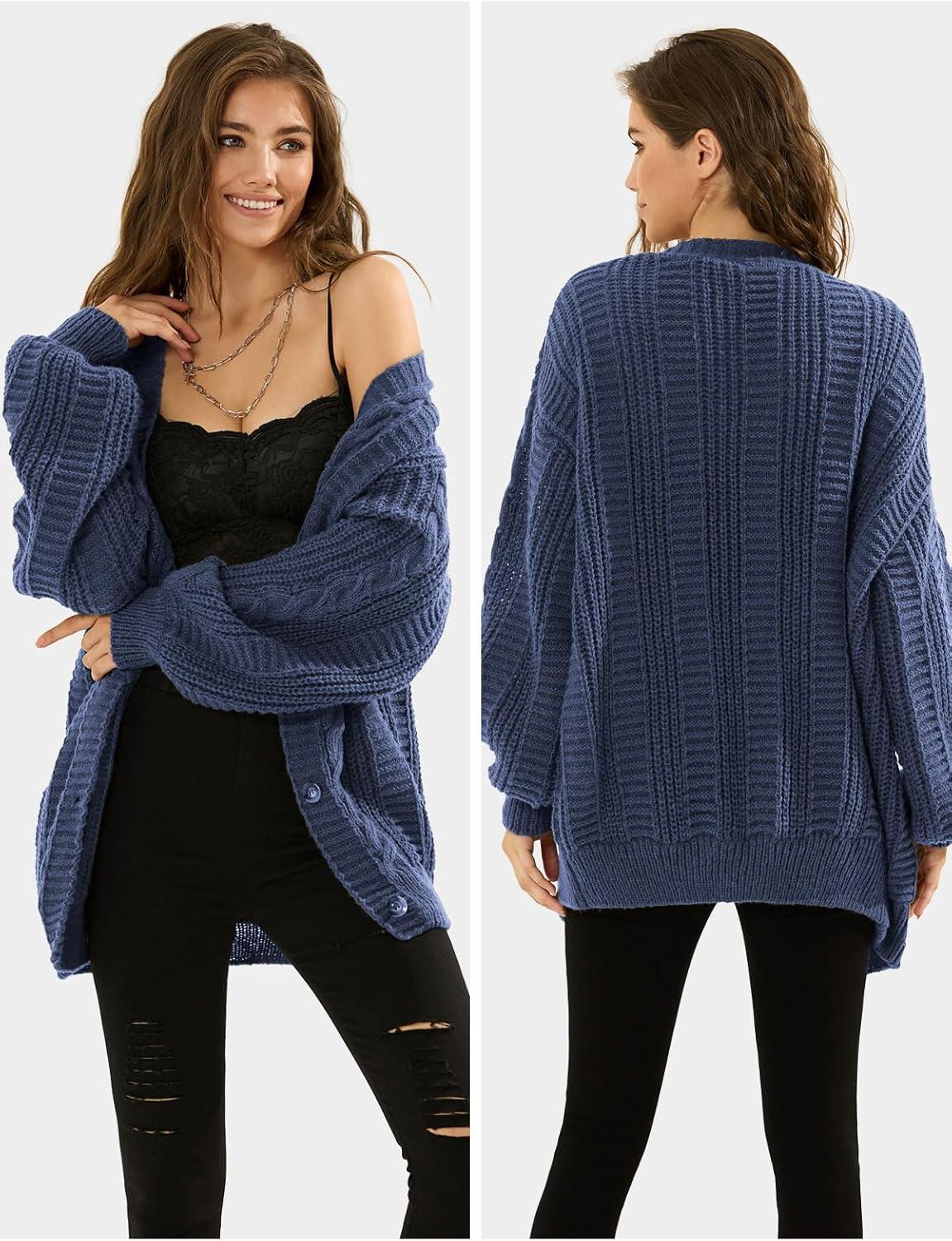 EXLURA Womens 2025 Oversized Cardigan Sweaters Fall Winter Lightweight Soft Knit Cardigan Open Front Button Outwear Coats(Navy Blue)