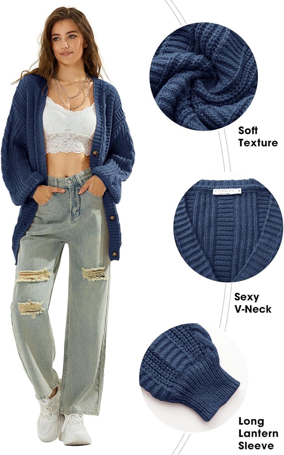 EXLURA Womens 2025 Oversized Cardigan Sweaters Fall Winter Lightweight Soft Knit Cardigan Open Front Button Outwear Coats(Grey Blue)