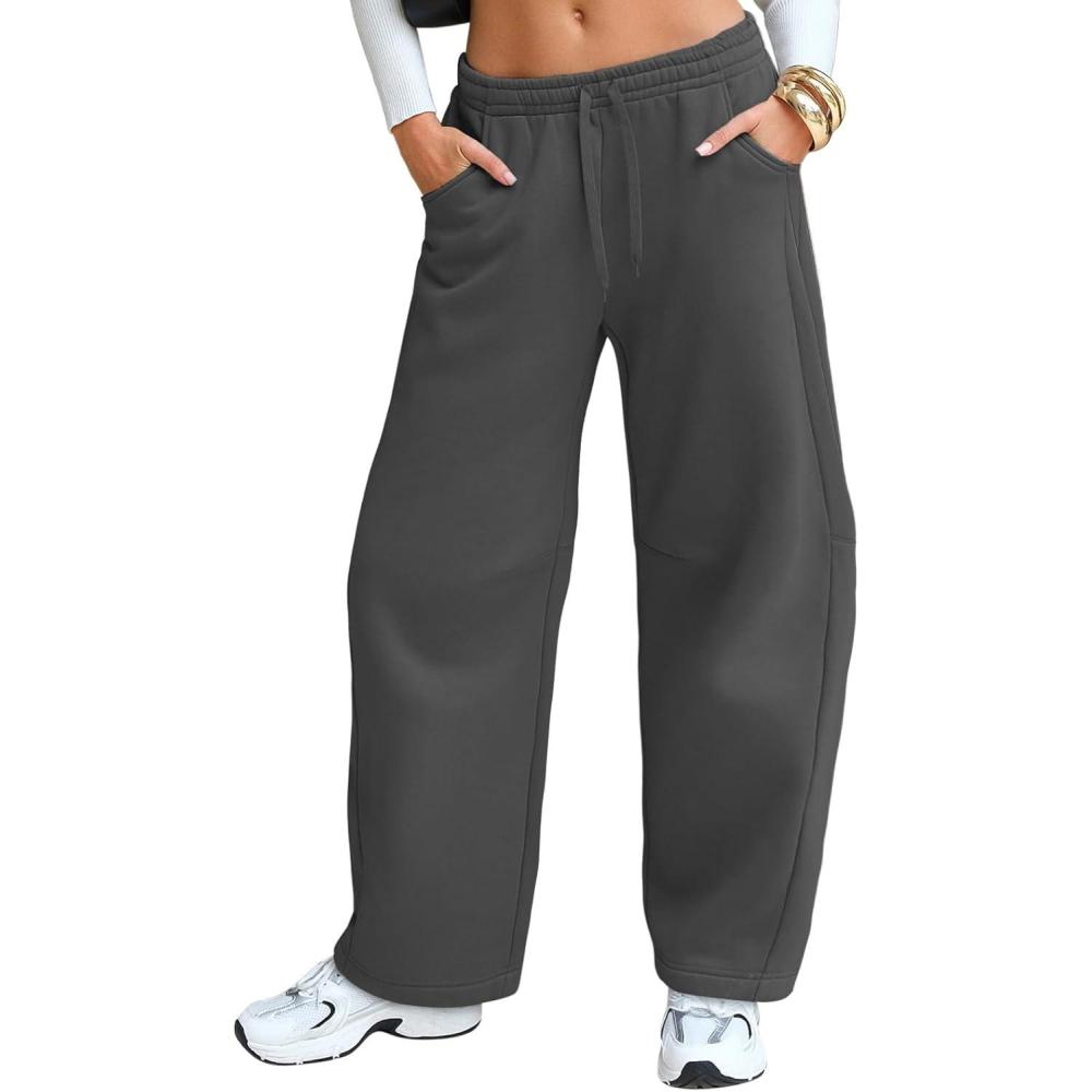 EXLURA Womens Barrel Sweatpants Fleece Lined Baggy Drawstring Pants Fall Winter Outfits Athletic Joggers with Pockets 2025(Dark Grey)