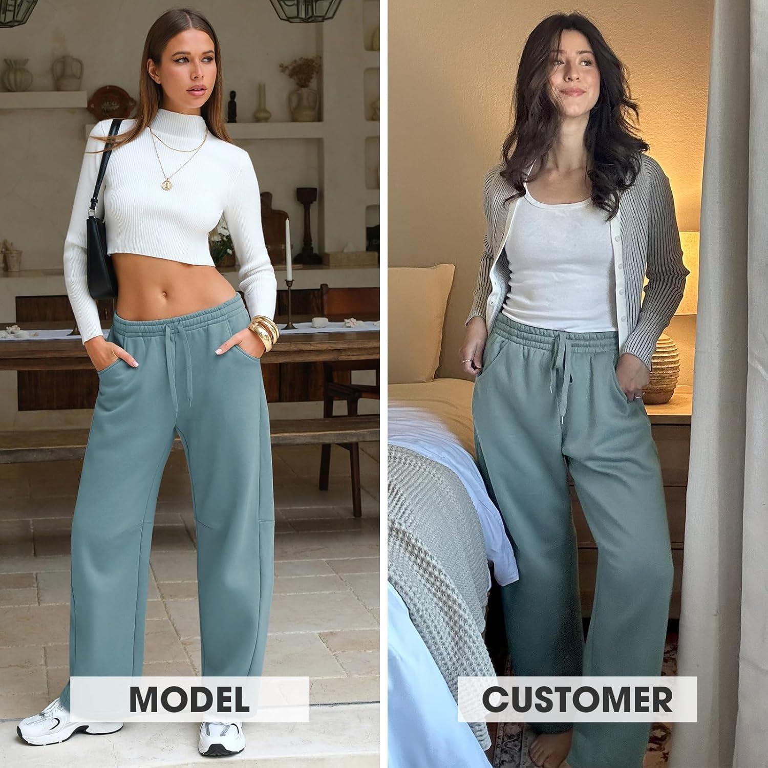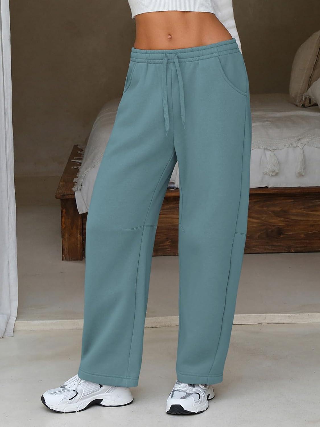 EXLURA Womens Barrel Sweatpants Fleece Lined Baggy Drawstring Pants Fall Winter Outfits Athletic Joggers with Pockets 2025(Grey Blue)