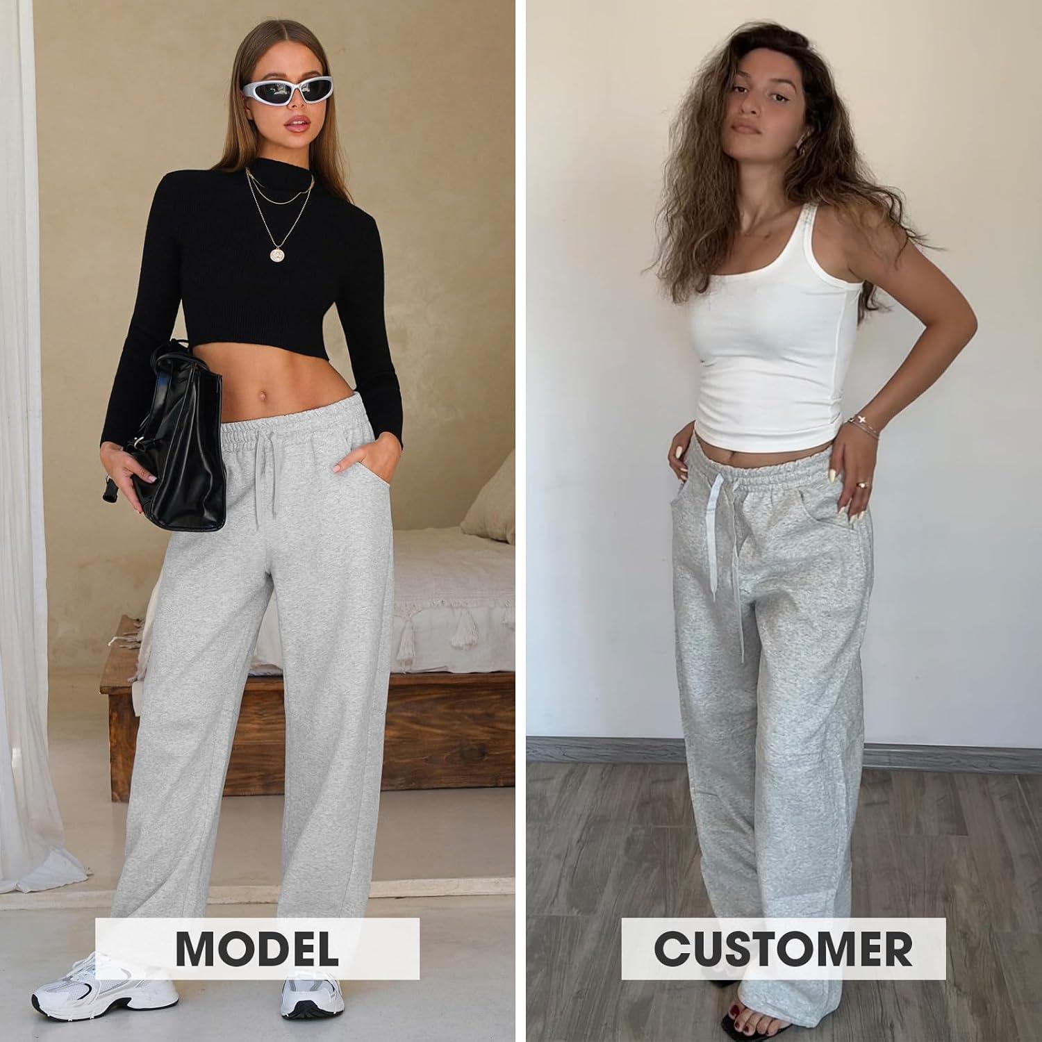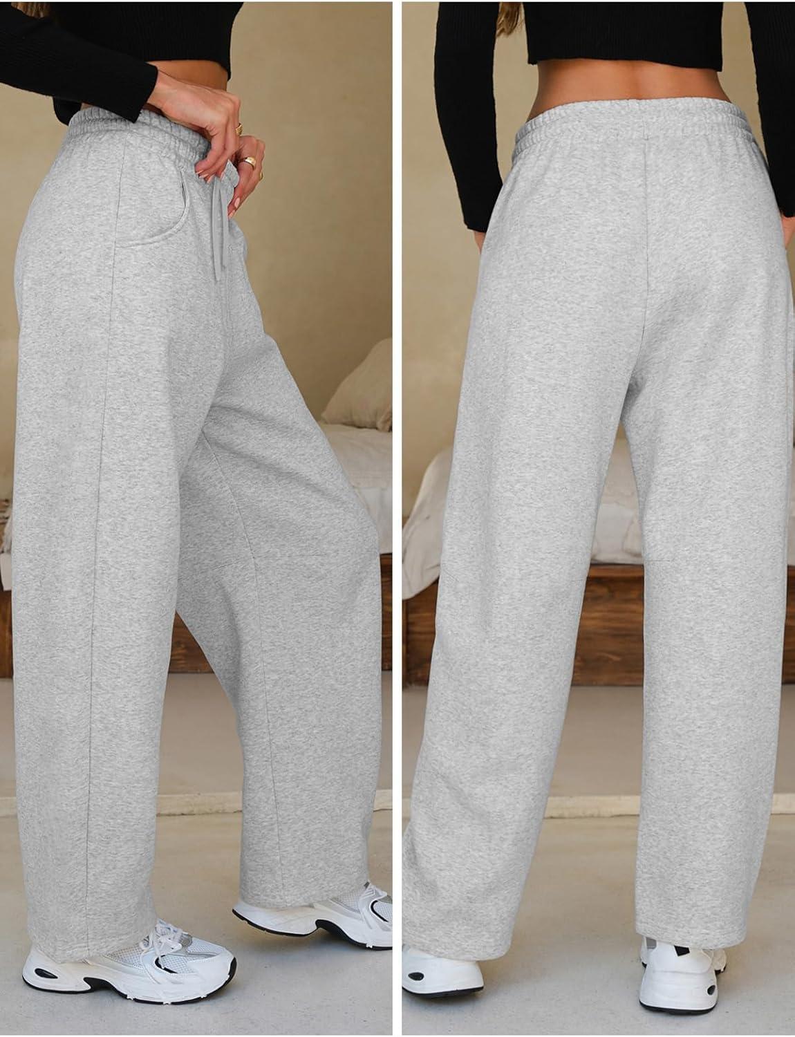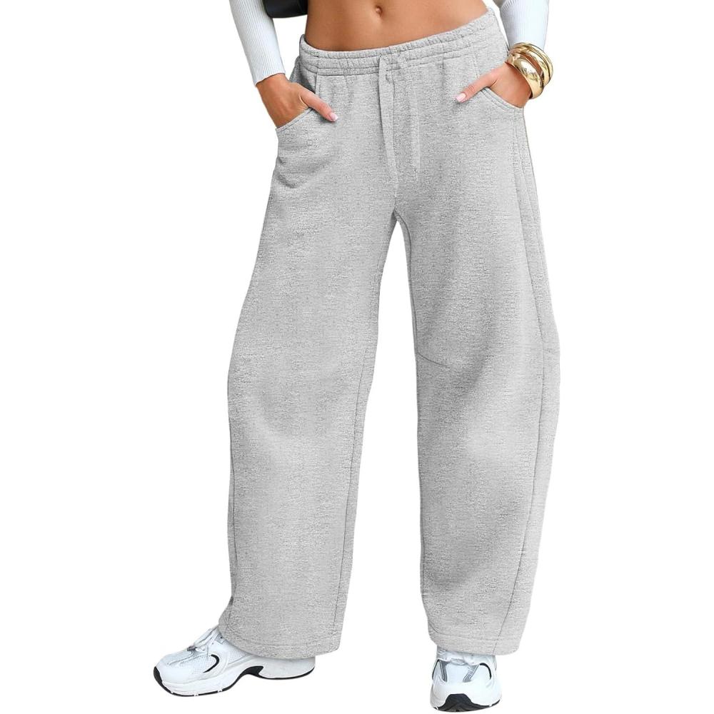 EXLURA Womens Barrel Sweatpants Fleece Lined Baggy Drawstring Pants Fall Winter Outfits Athletic Joggers with Pockets 2025(Light Grey)