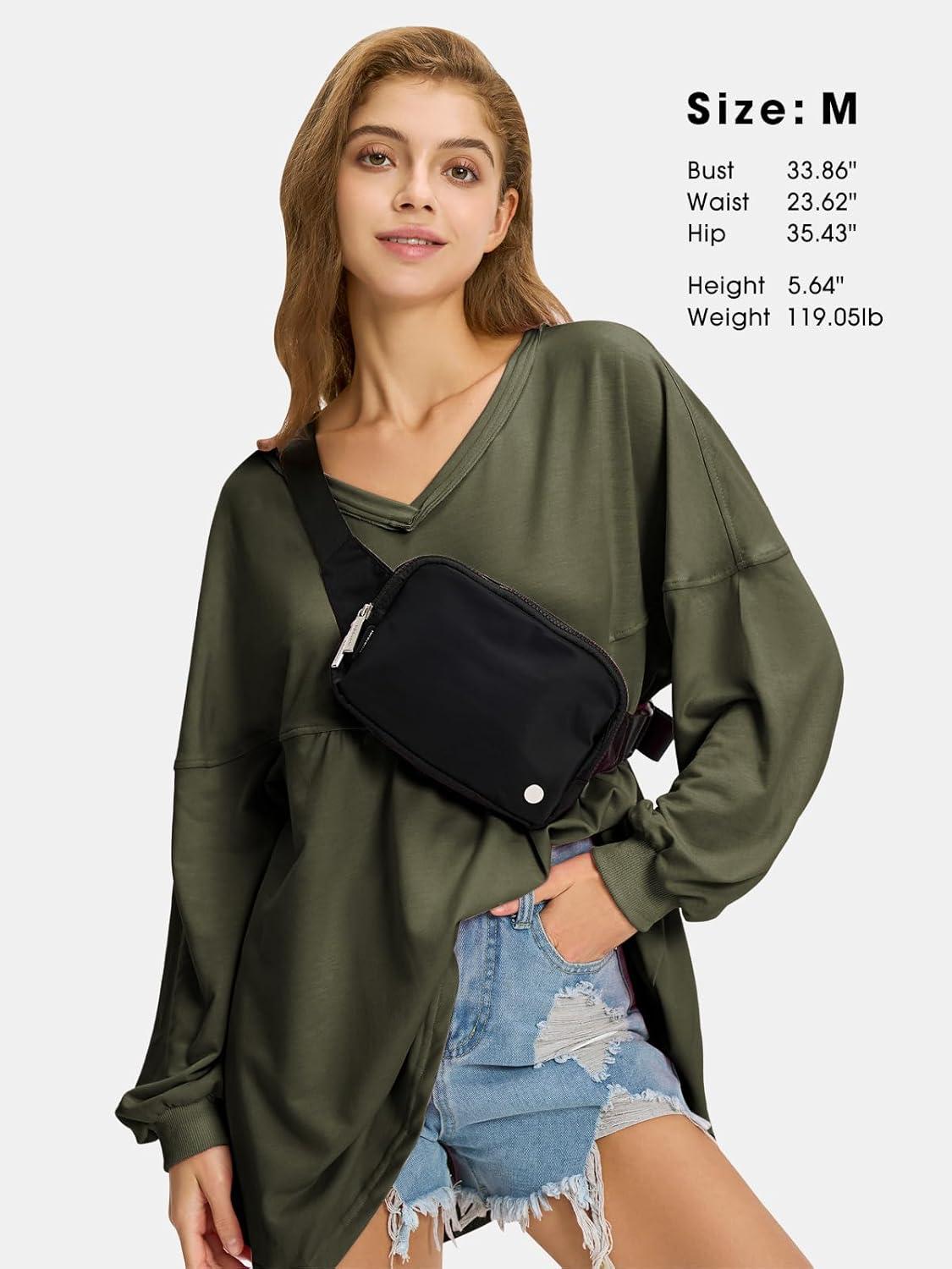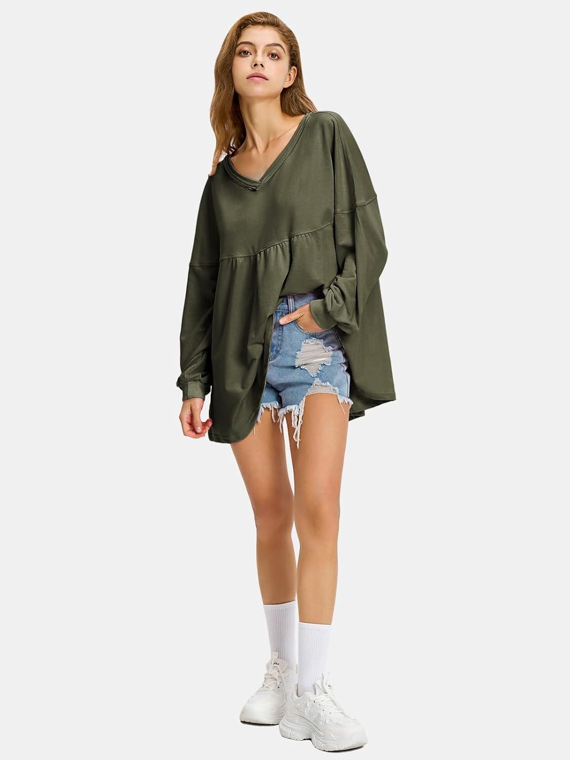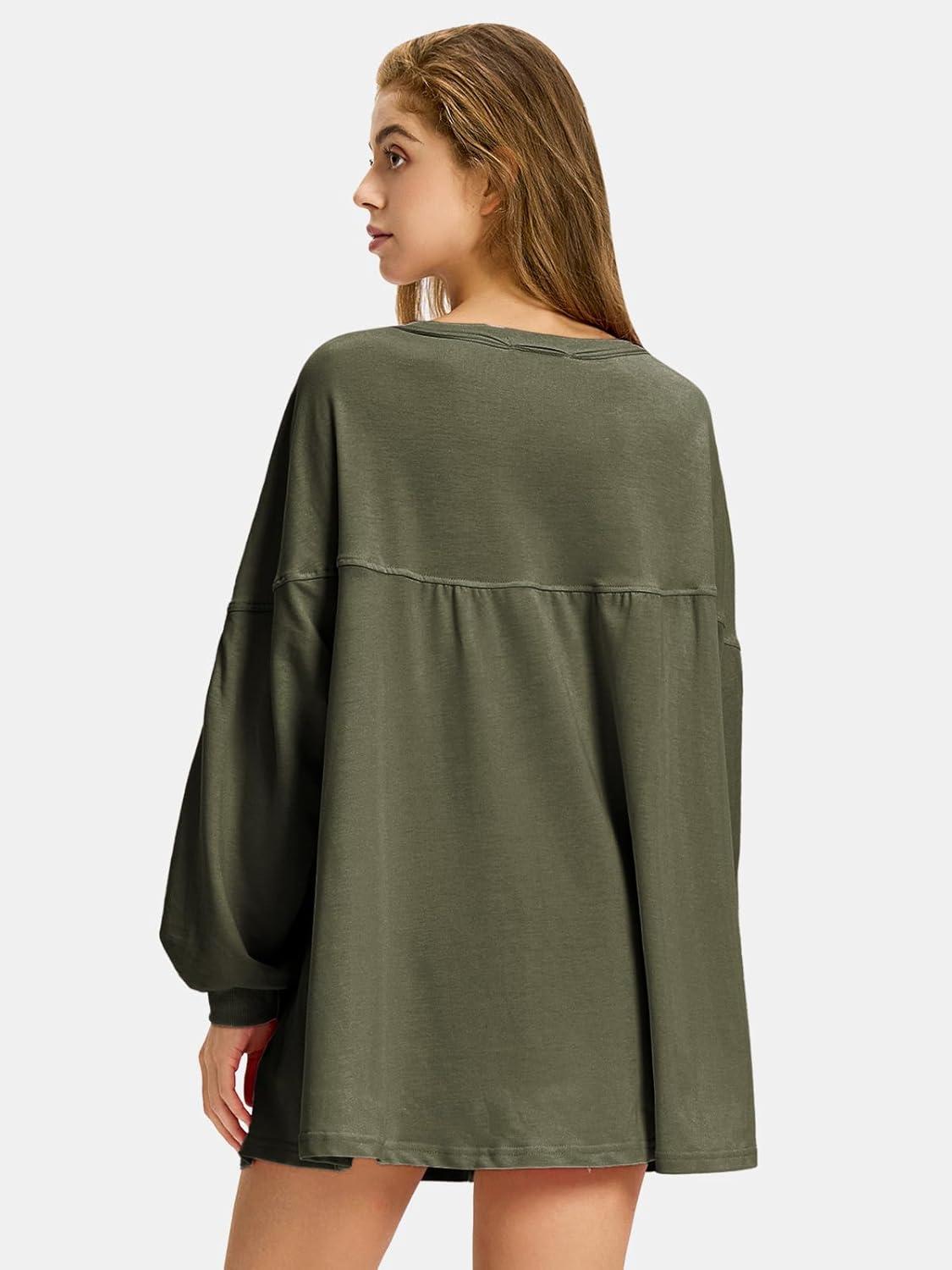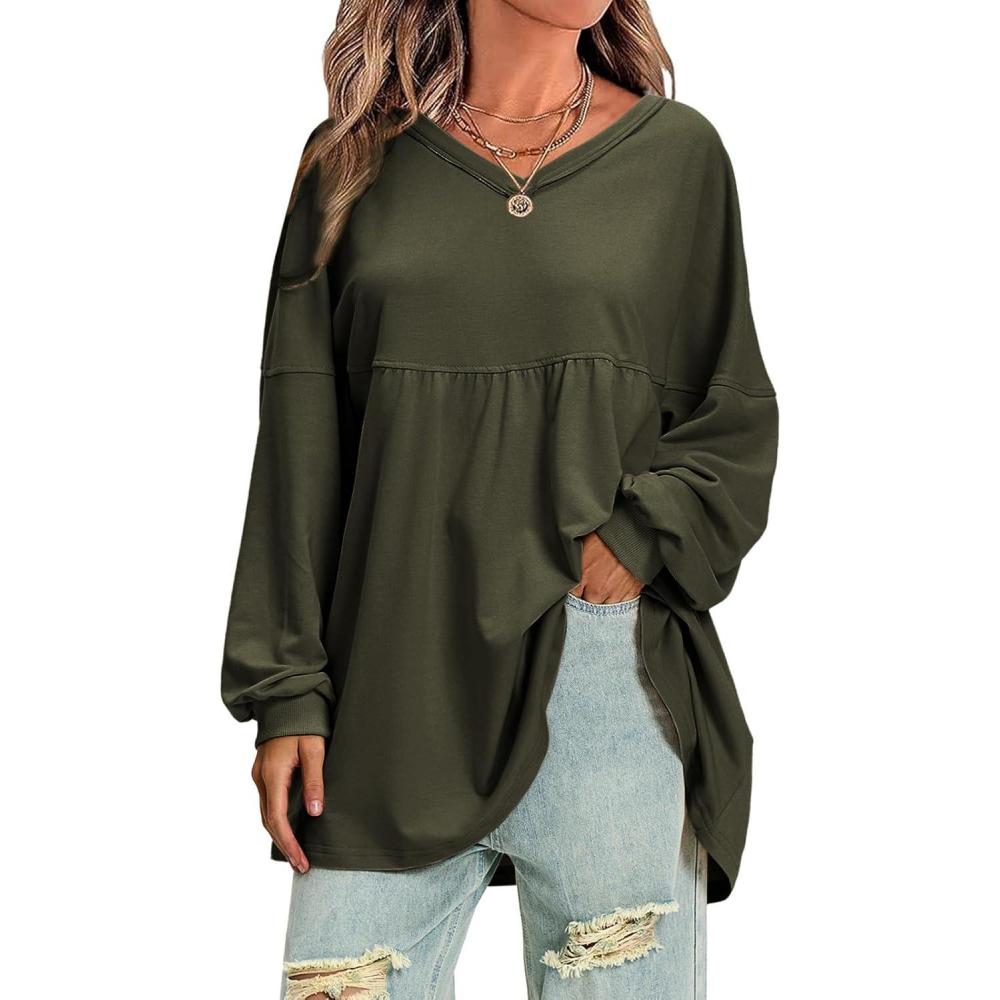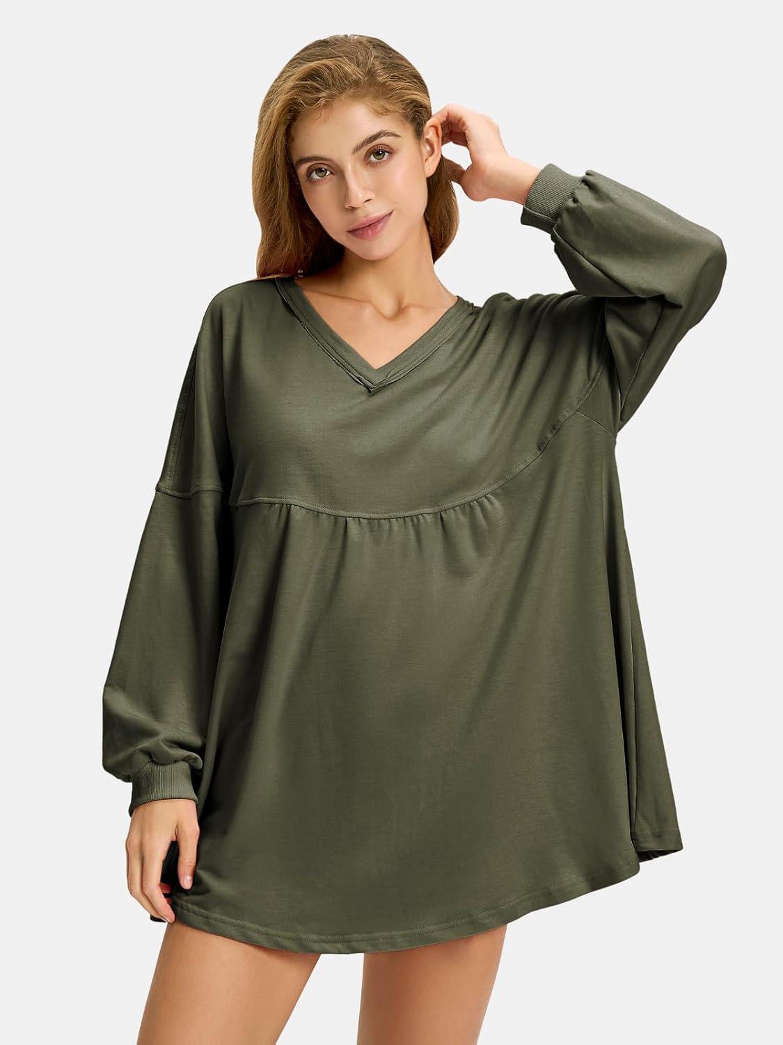 EXLURA Womens Fall Long Sleeve Shirts V Neck Casual Maternity Tops Loose Babydoll Pullover Dressy Tunic Blouse Outfits 2025(Army Green)