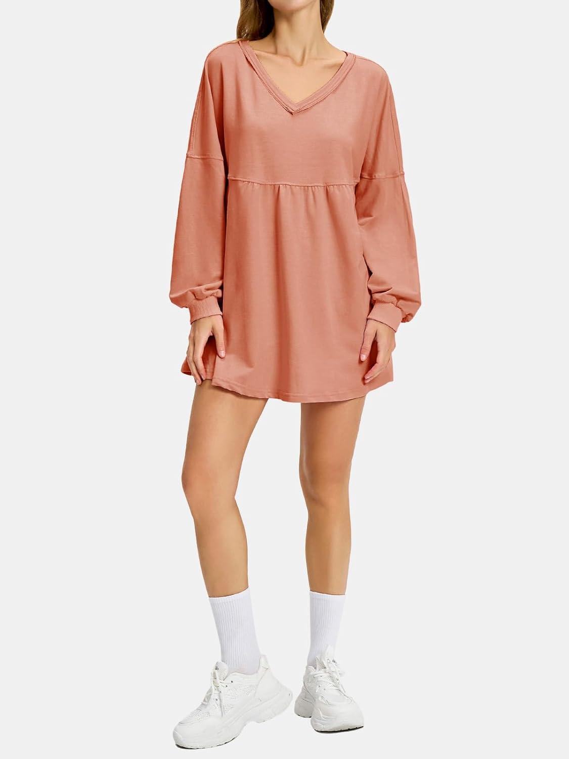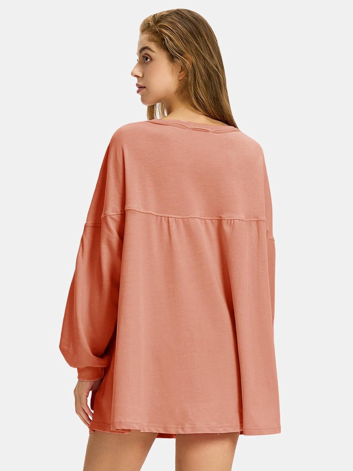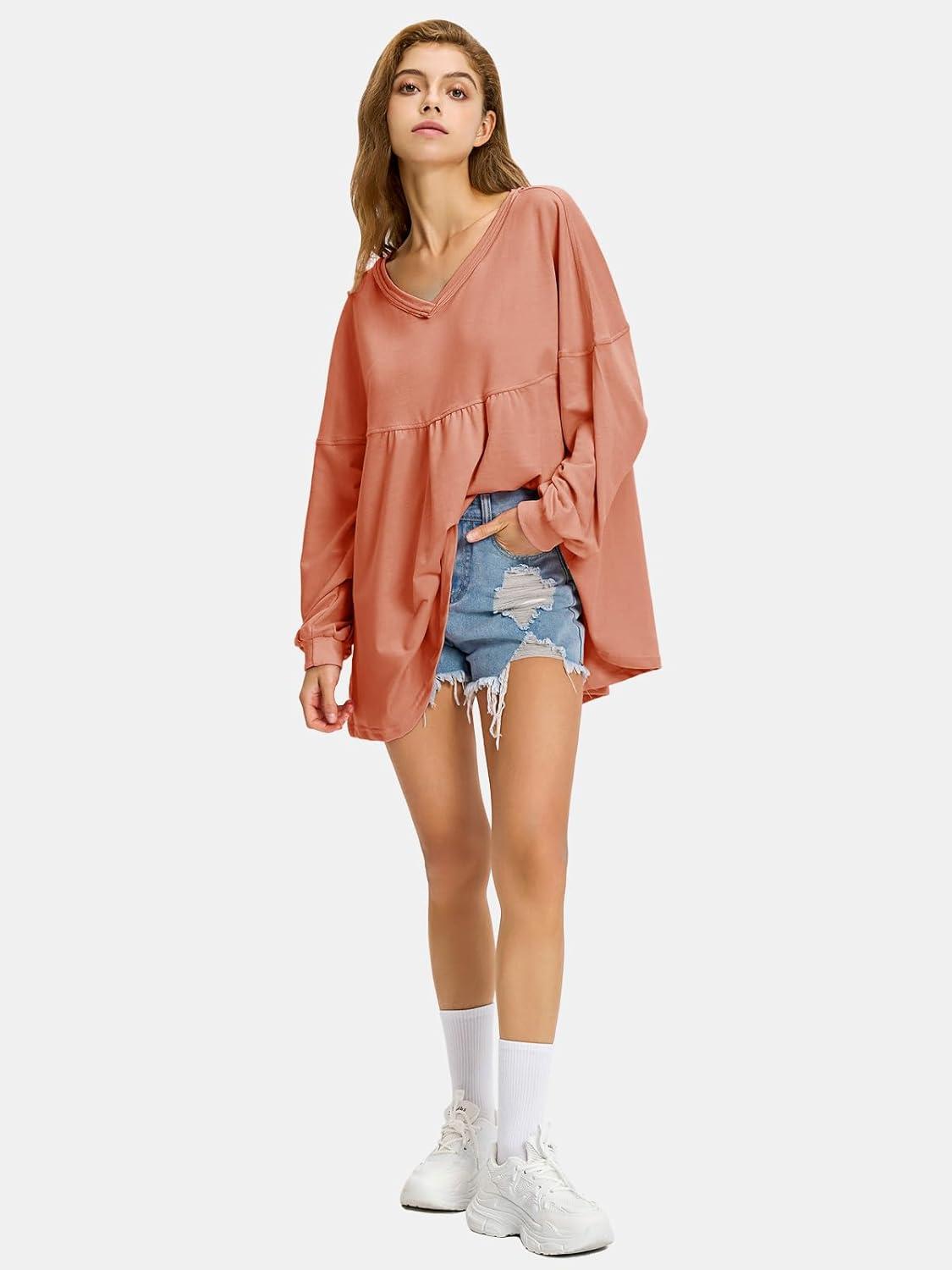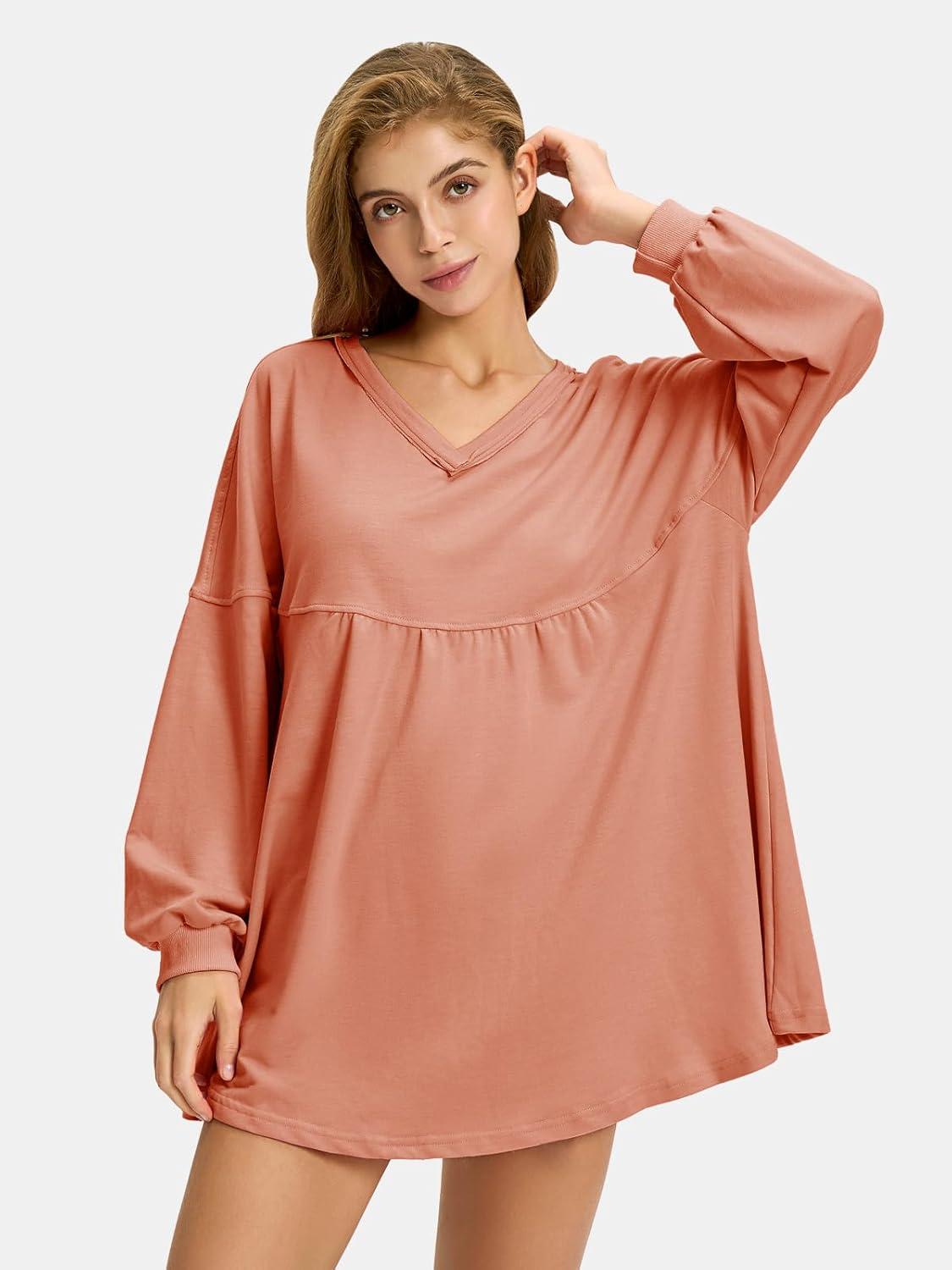 EXLURA Womens Fall Long Sleeve Shirts V Neck Casual Maternity Tops Loose Babydoll Pullover Dressy Tunic Blouse Outfits 2025(Orange)