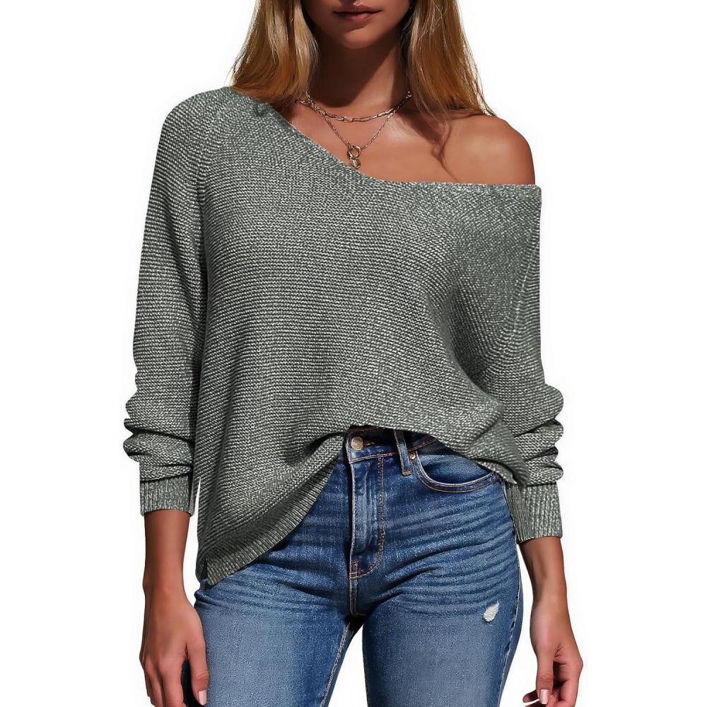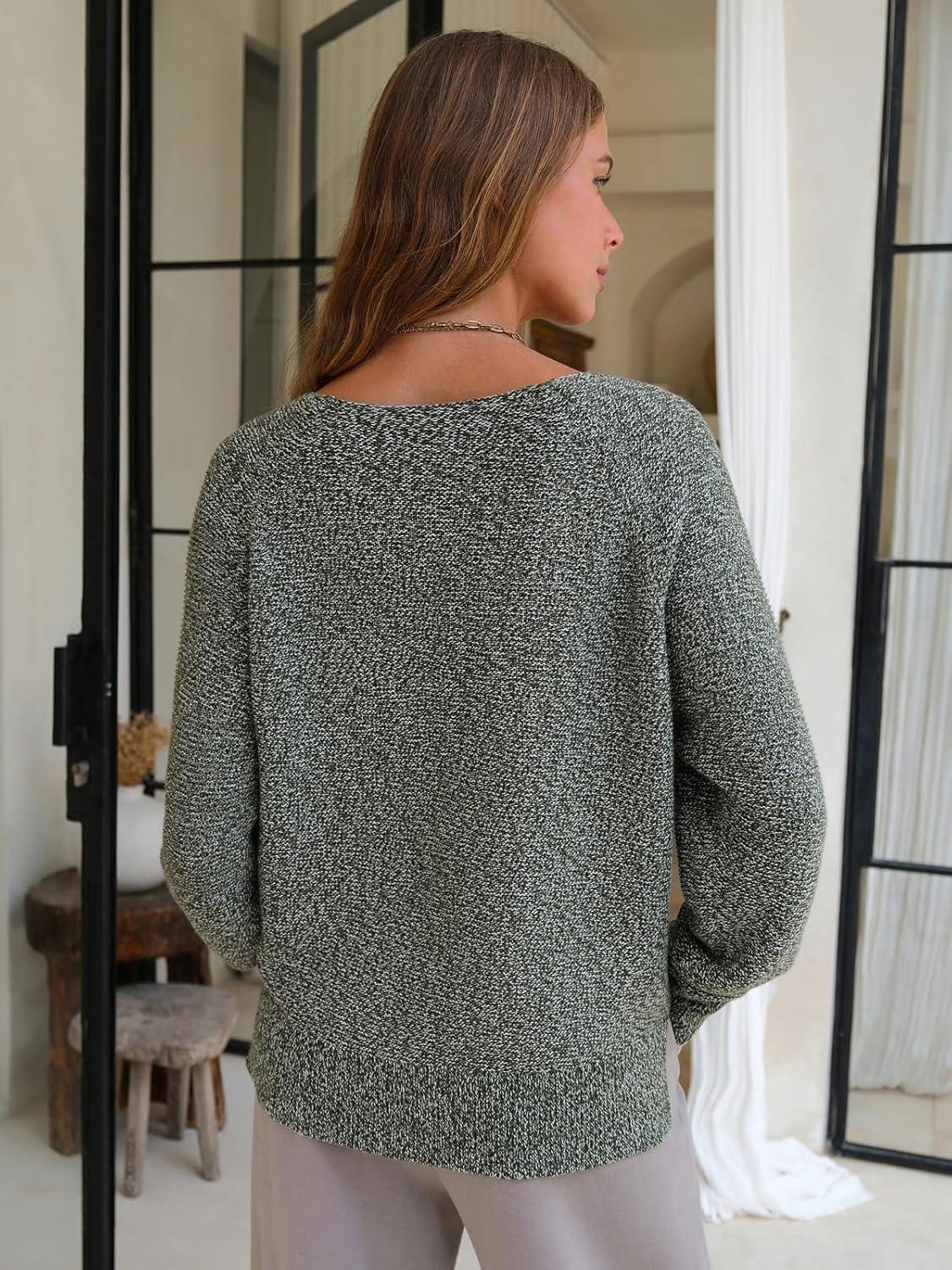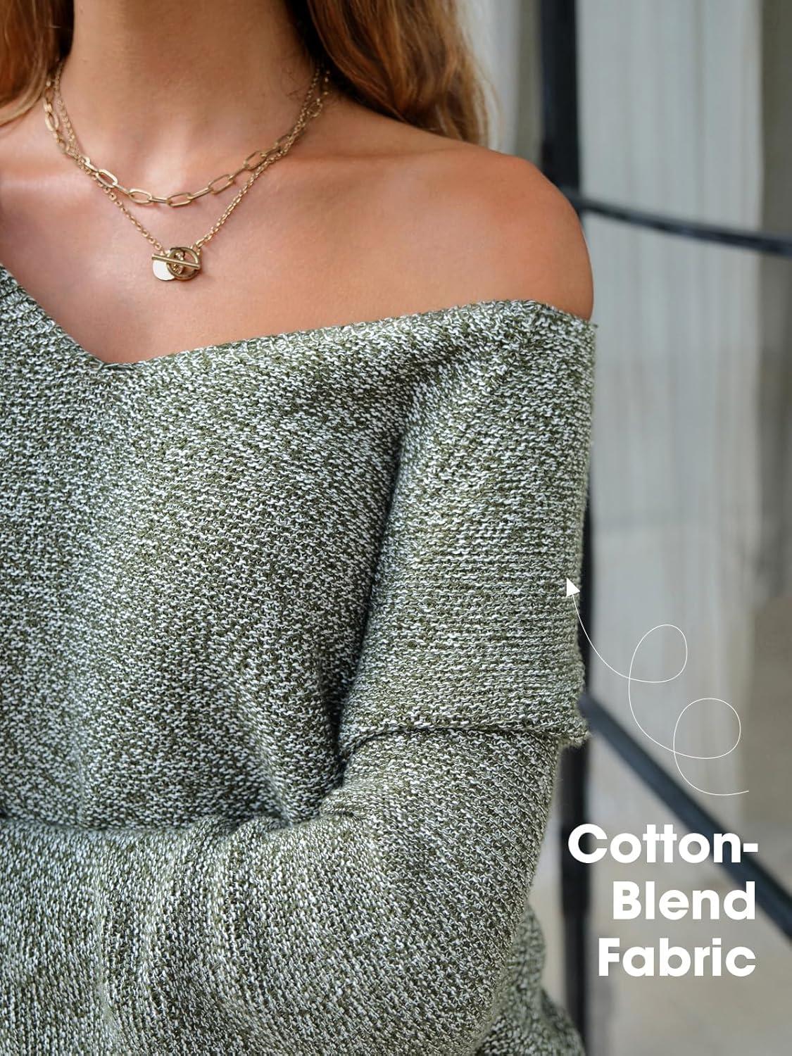 EXLURA Womens Fall Oversized Sweaters Cotton Long Sleeve V Neck Off Shoulder Sweater Pullover Jumper Tops Trendy Winter 2025(Army Green)