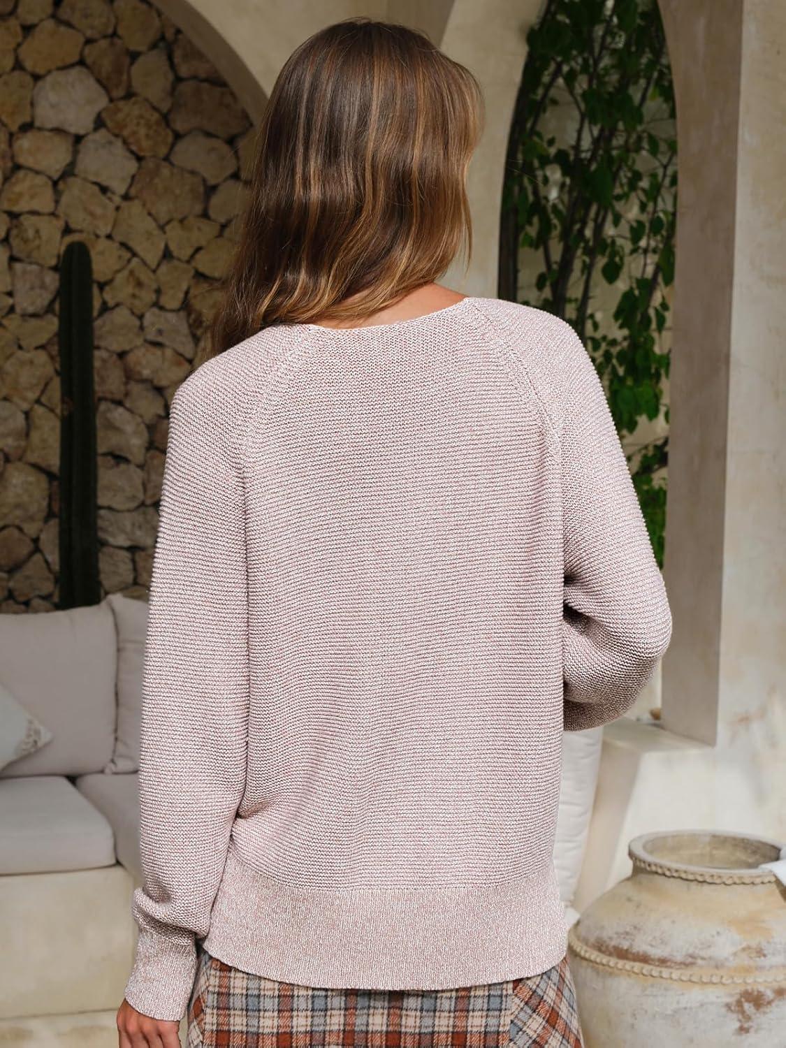 EXLURA Womens Fall Oversized Sweaters Cotton Long Sleeve V Neck Off Shoulder Sweater Pullover Jumper Tops Trendy Winter 2025(Dusty Orange)