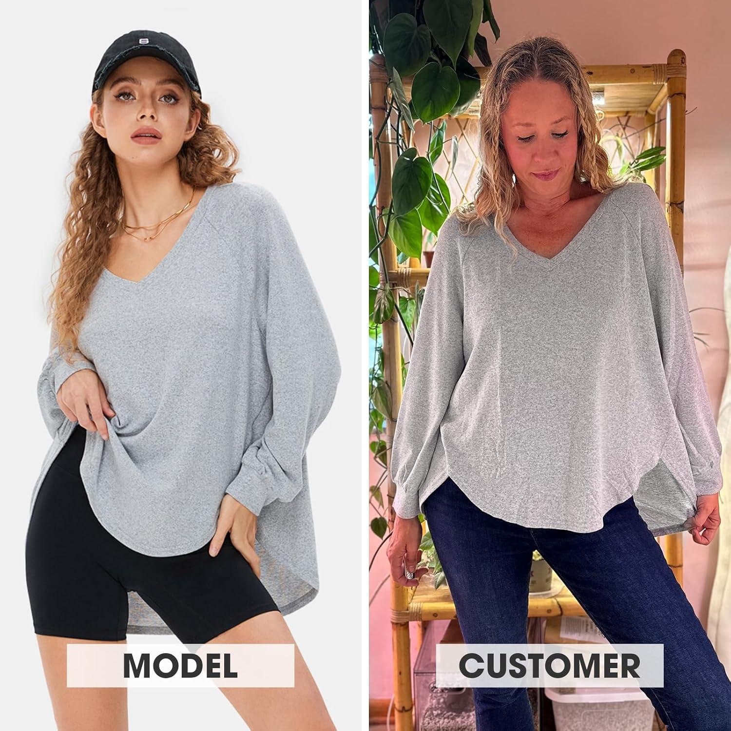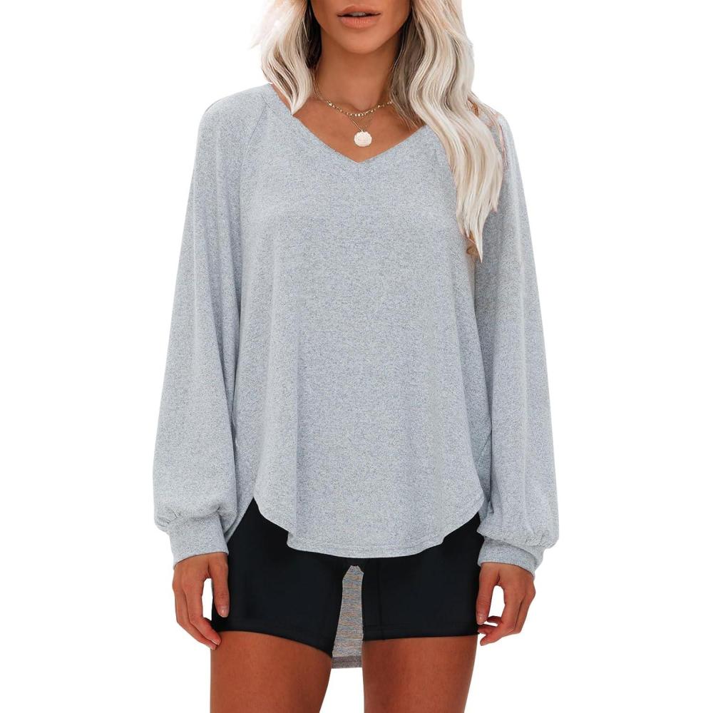 Save big on EXLURA Womens Fall Oversized V Neck Tunic Tops 2025 Casual Long Sleeve Shirts Lightweight Soft Sweater Curved Hem T Shirts(Grey) and accessories during our BOGO sale. Buy one, get one 50% off!