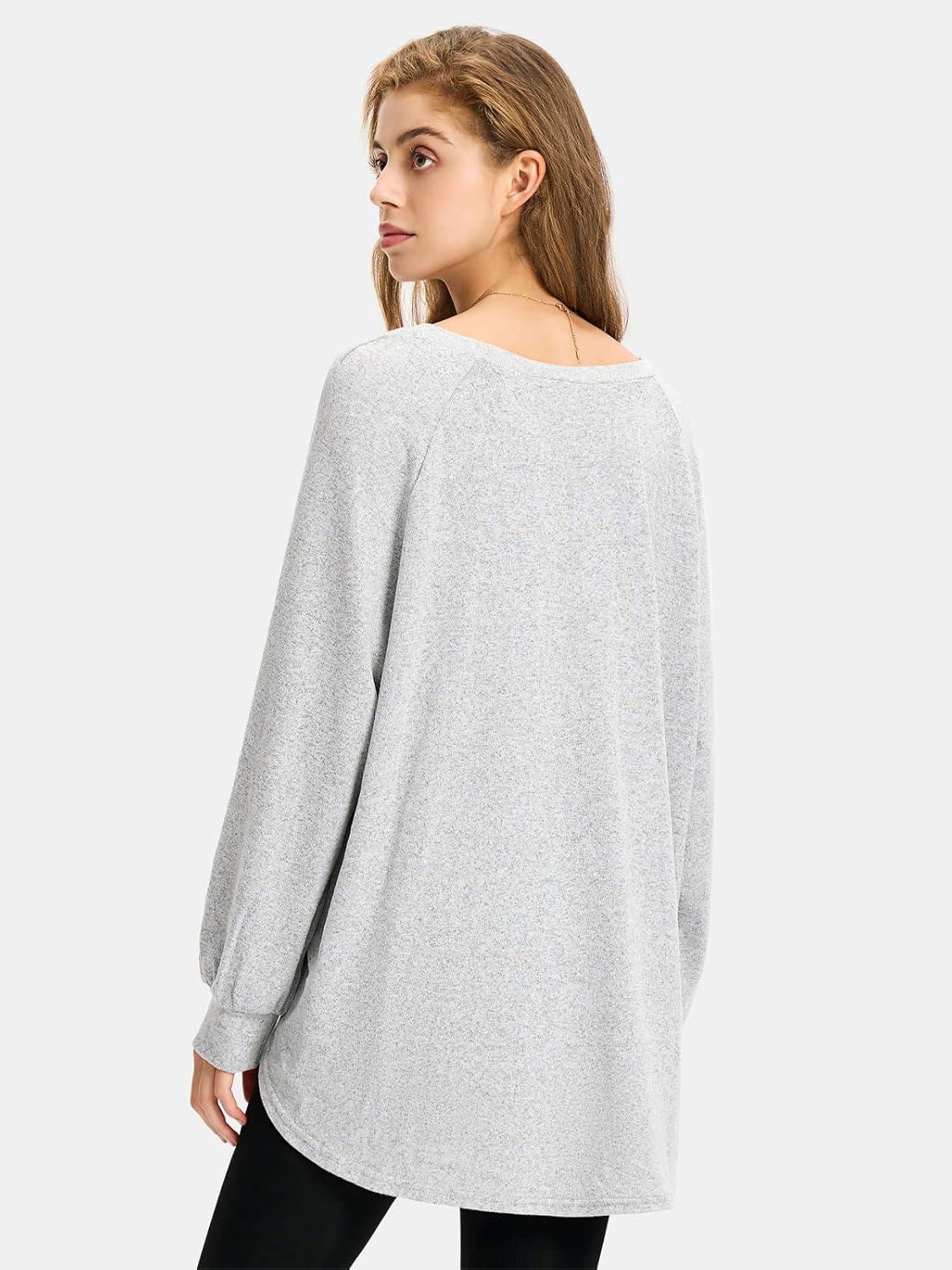 EXLURA Womens Fall Oversized V Neck Tunic Tops 2025 Casual Long Sleeve Shirts Lightweight Soft Sweater Curved Hem T Shirts(Grey)