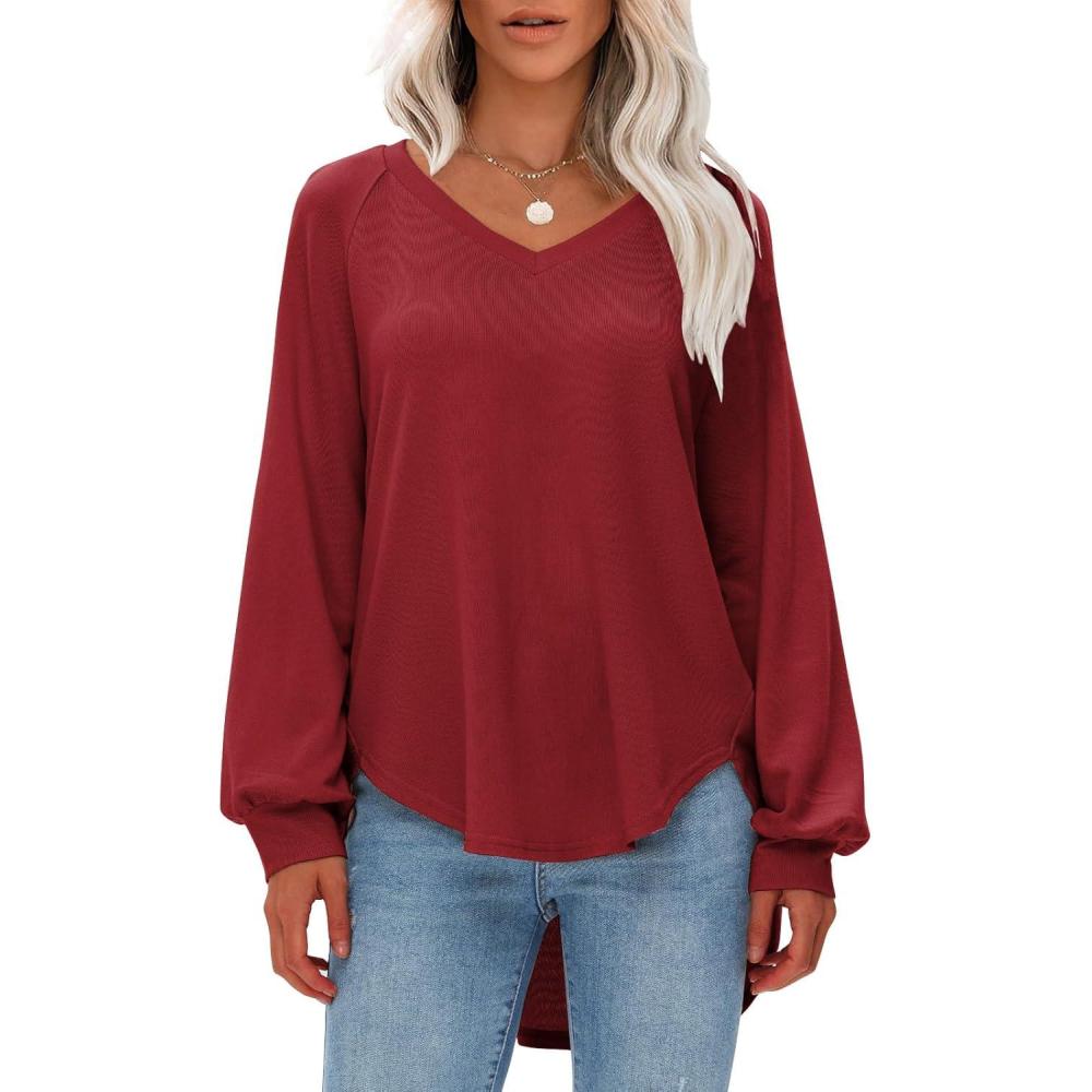 Be the first to review “EXLURA Womens Fall Oversized V Neck Tunic Tops 2025 Casual Long Sleeve Shirts Lightweight Soft Sweater Curved Hem T Shirts(Red)”