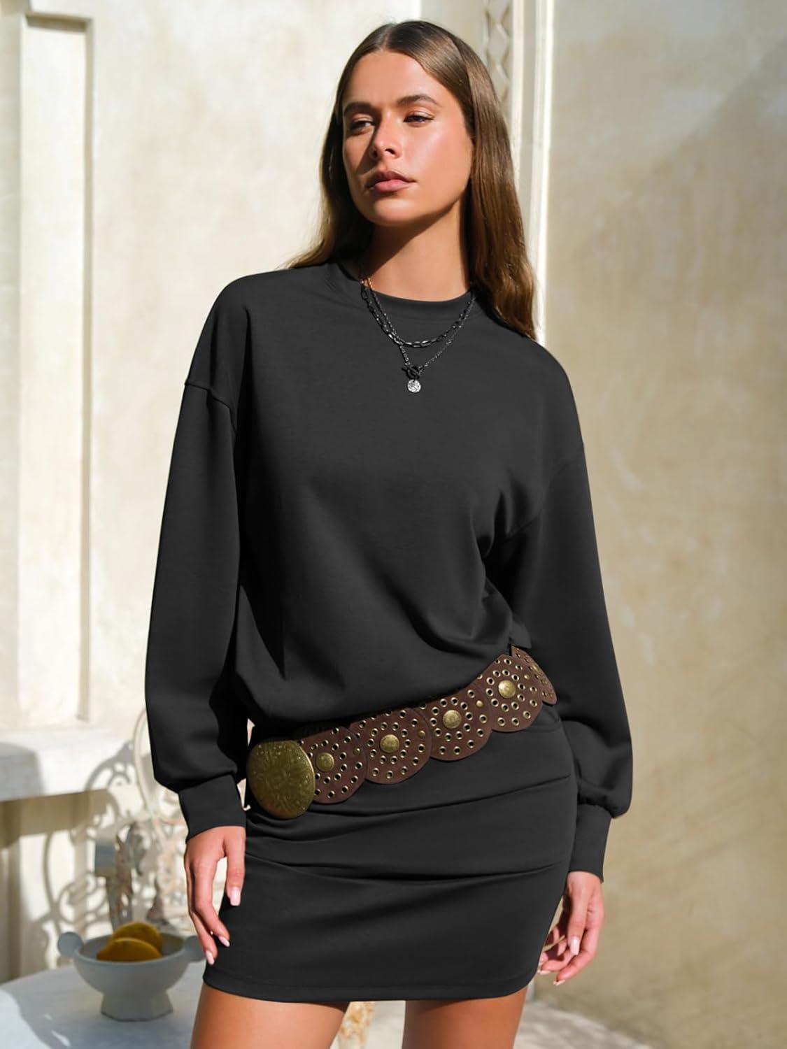 Don’t miss out on our limited-time offer: get a free {accessory} with your purchase of EXLURA Womens Fall Two Piece Skirt Sets Cotton Long Sleeve Mock Neck Sweatshirt Skort Matching Set Casual Tennis Outfits 2025(Black).