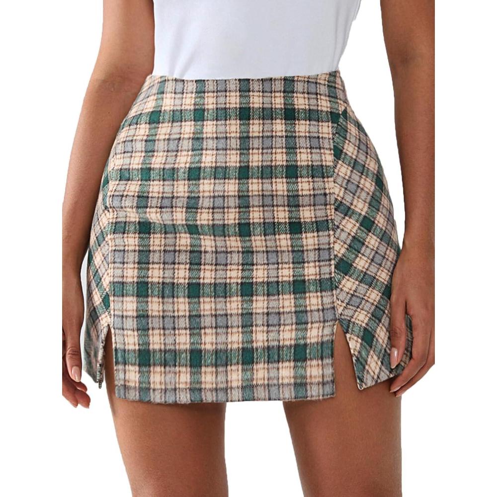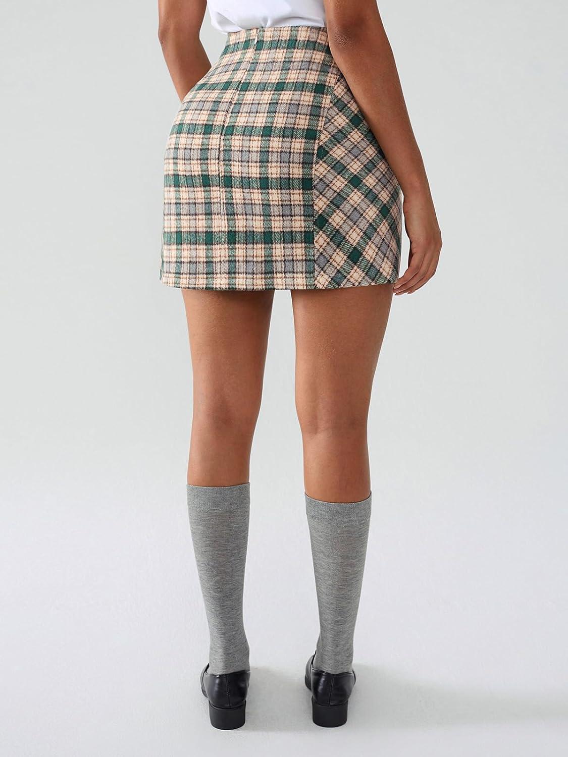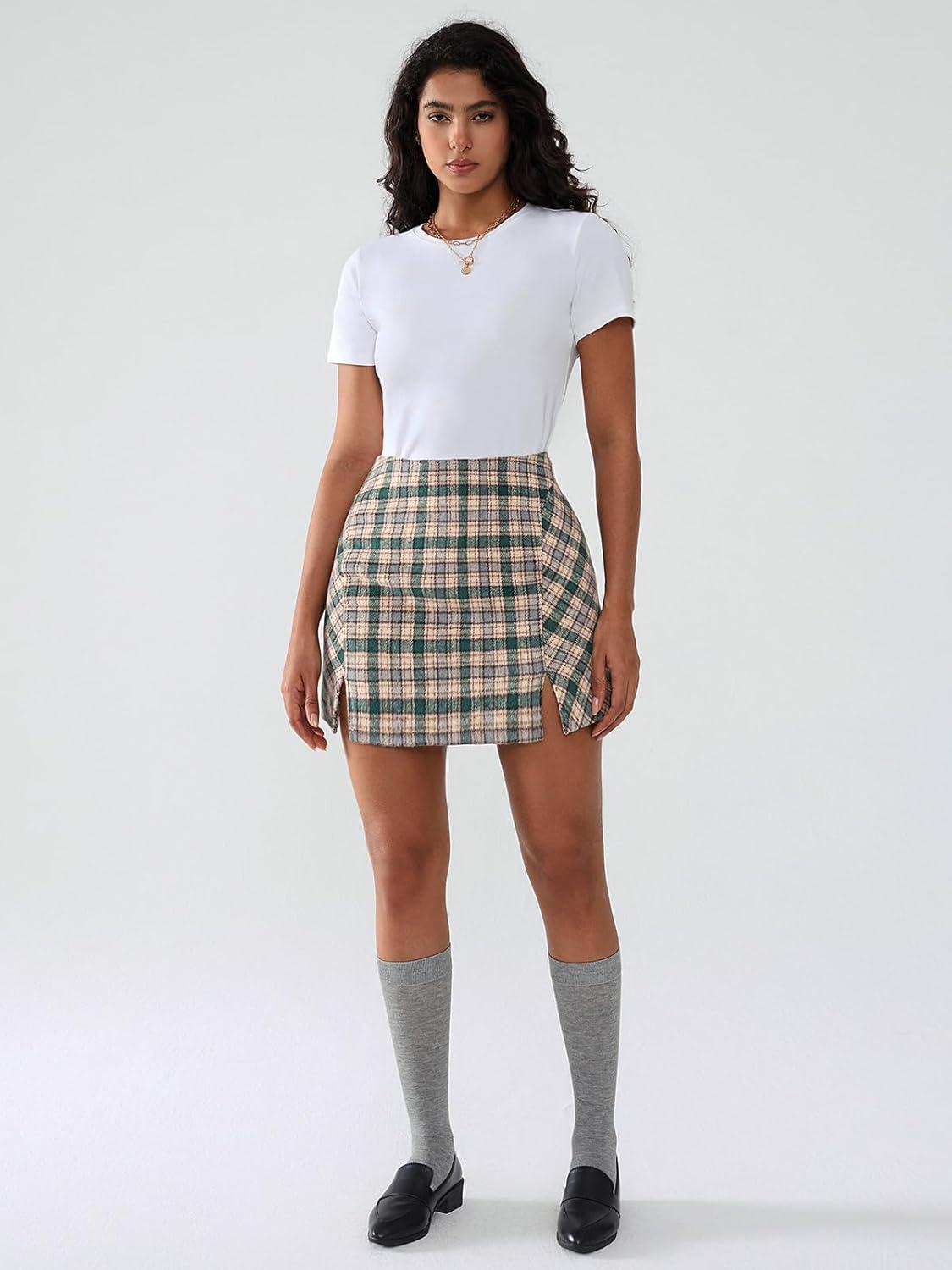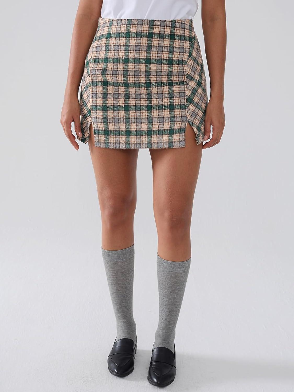 Get more for your money with our exclusive bundle deals on EXLURA Women’s Fashion Faux Wool Mini Skirt High Waisted Y2K Trendy Short Side Slit Tweed Plaid Skirts Fall Winter Outfits(Green) and accessories.