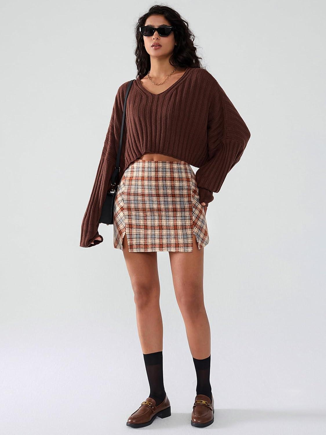 Be the first to review “EXLURA Women’s Fashion Faux Wool Mini Skirt High Waisted Y2K Trendy Short Side Slit Tweed Plaid Skirts Fall Winter Outfits(Orange)”