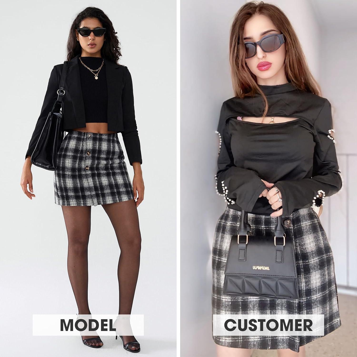 Be the first to review “EXLURA Womens Faux Wool Plaid Mini Skirt Elastic High Waisted Tweed Skirts Button Bodycon Skirt Fall Winter Outfit Pocket(Black Plaid)”