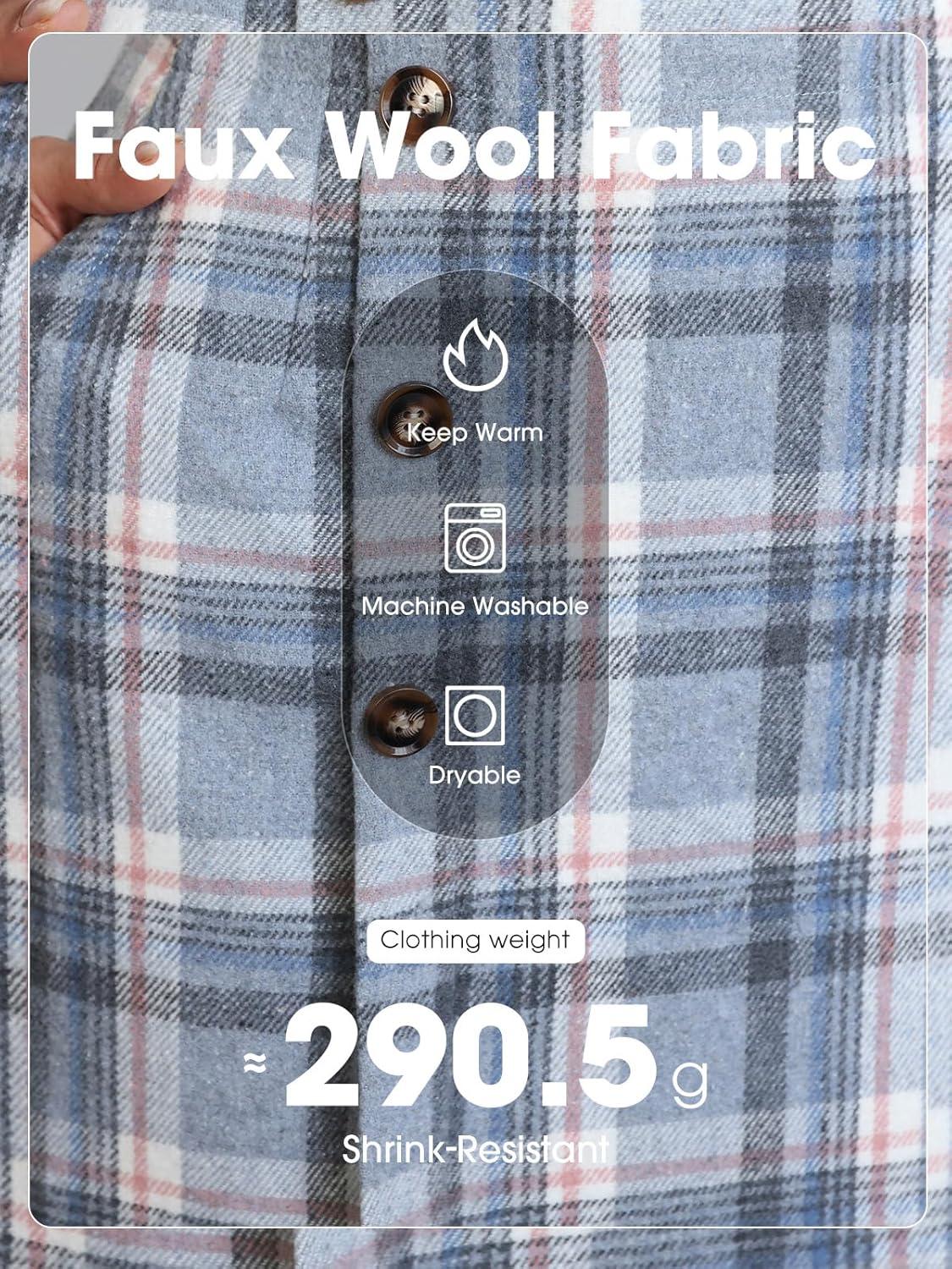 EXLURA Womens Faux Wool Plaid Mini Skirt Elastic High Waisted Tweed Skirts Button Bodycon Skirt Fall Winter Outfit Pocket(Grey Blue Plaid)