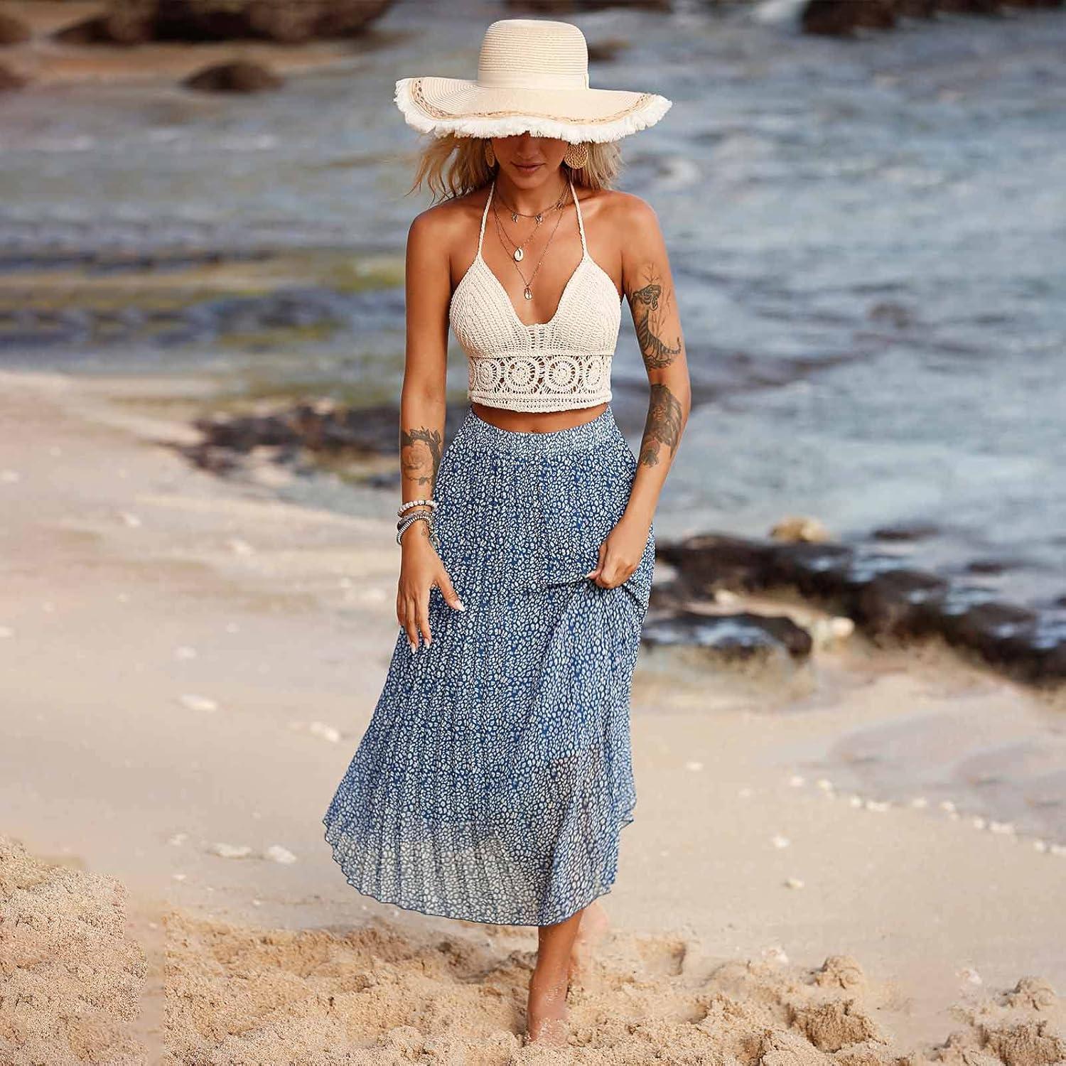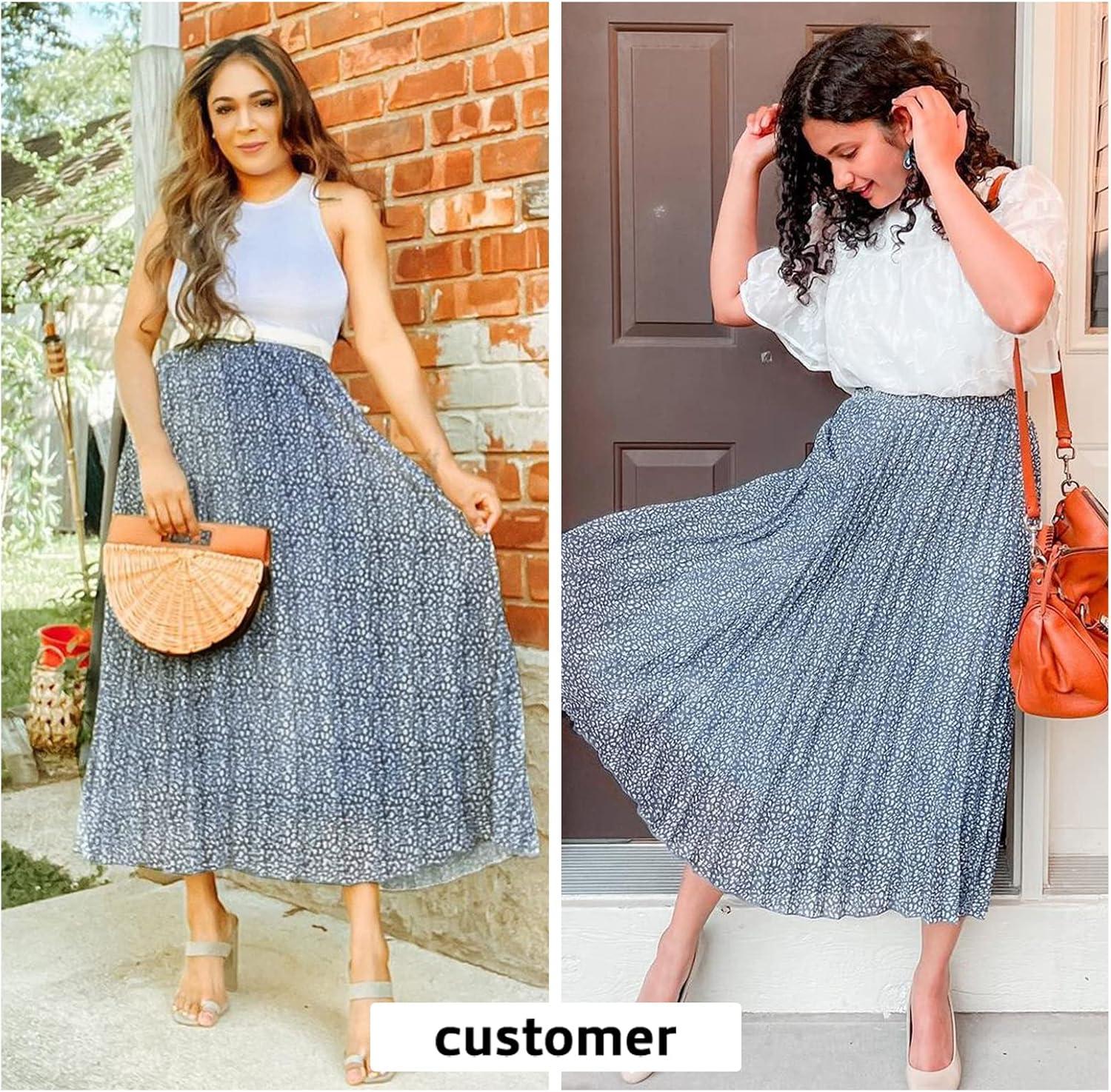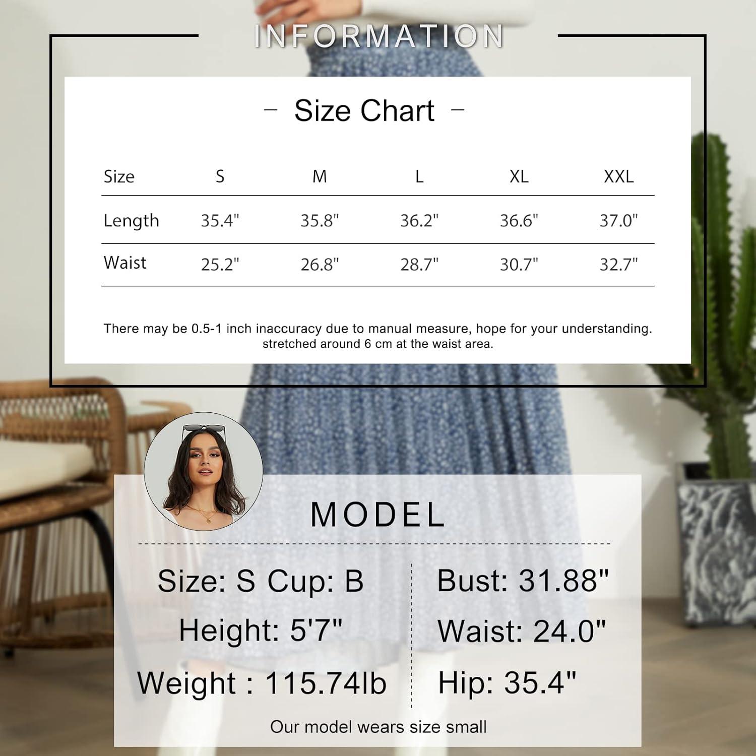EXLURA Women’s Floral Printed Chiffon Elastic High Waist Pleated Long Maxi Skirt