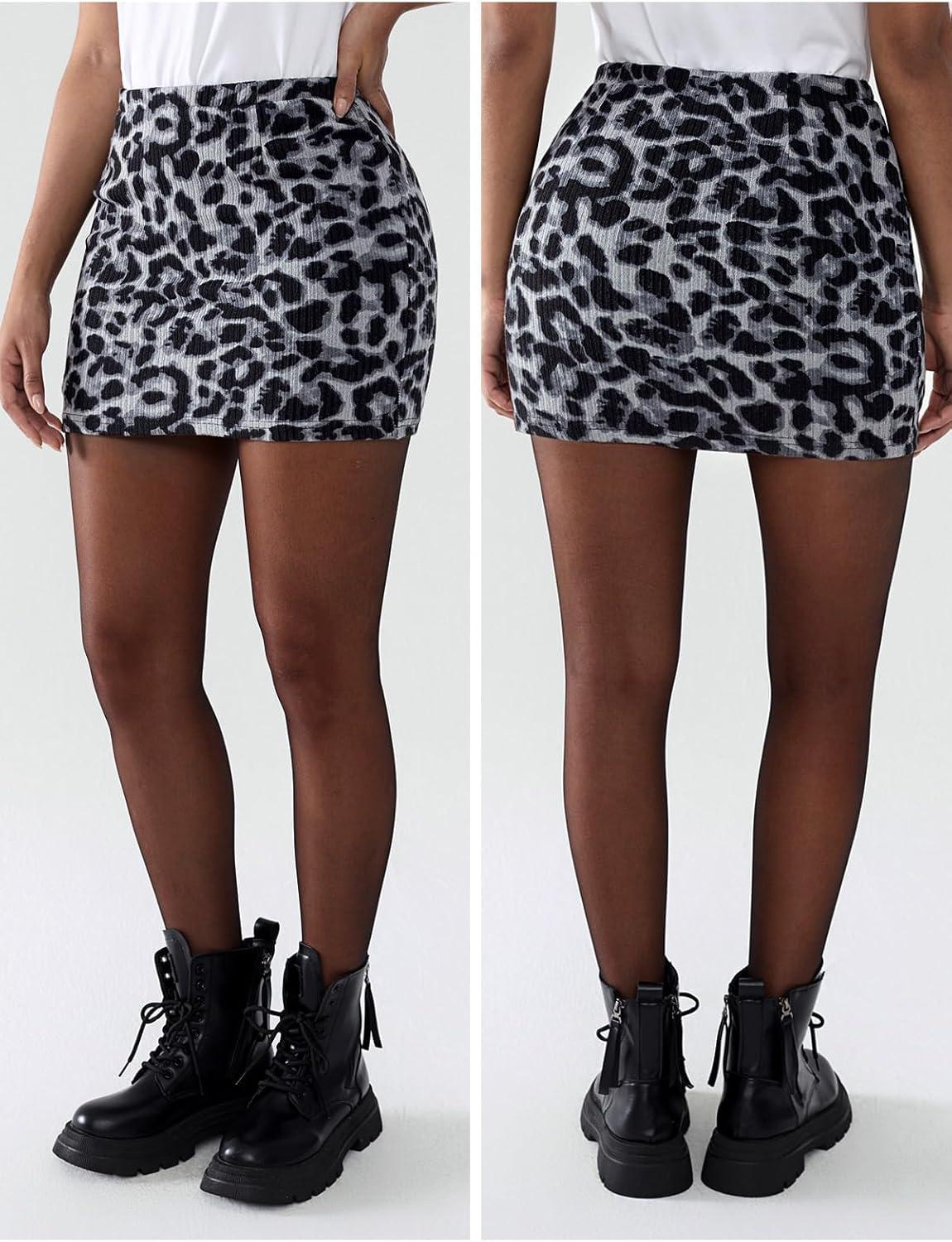 EXLURA Women’s Leopard Print Mini Skirt High Waist Sexy Cheetah Skirts Trendy Pencil Bodycon Short Skirts Concert Outfit 2025(Grey Leopard)