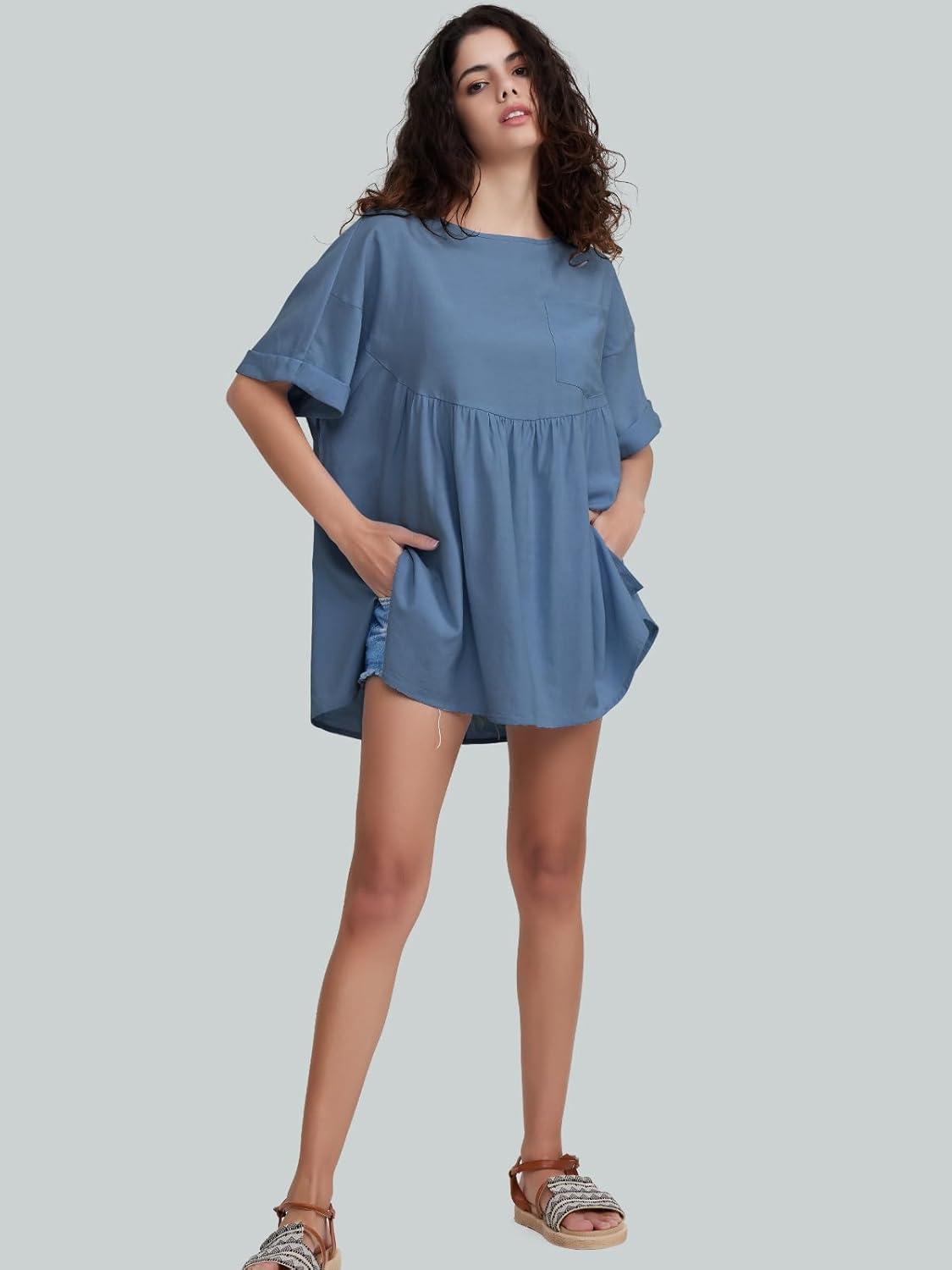 Be the first to review “EXLURA Womens Short Sleeve Summer Tops Casual Loose Maternity Babydoll Peplum Tops Oversized Shirts Tunic 2025(Navy Blue)”