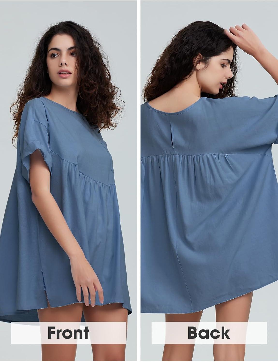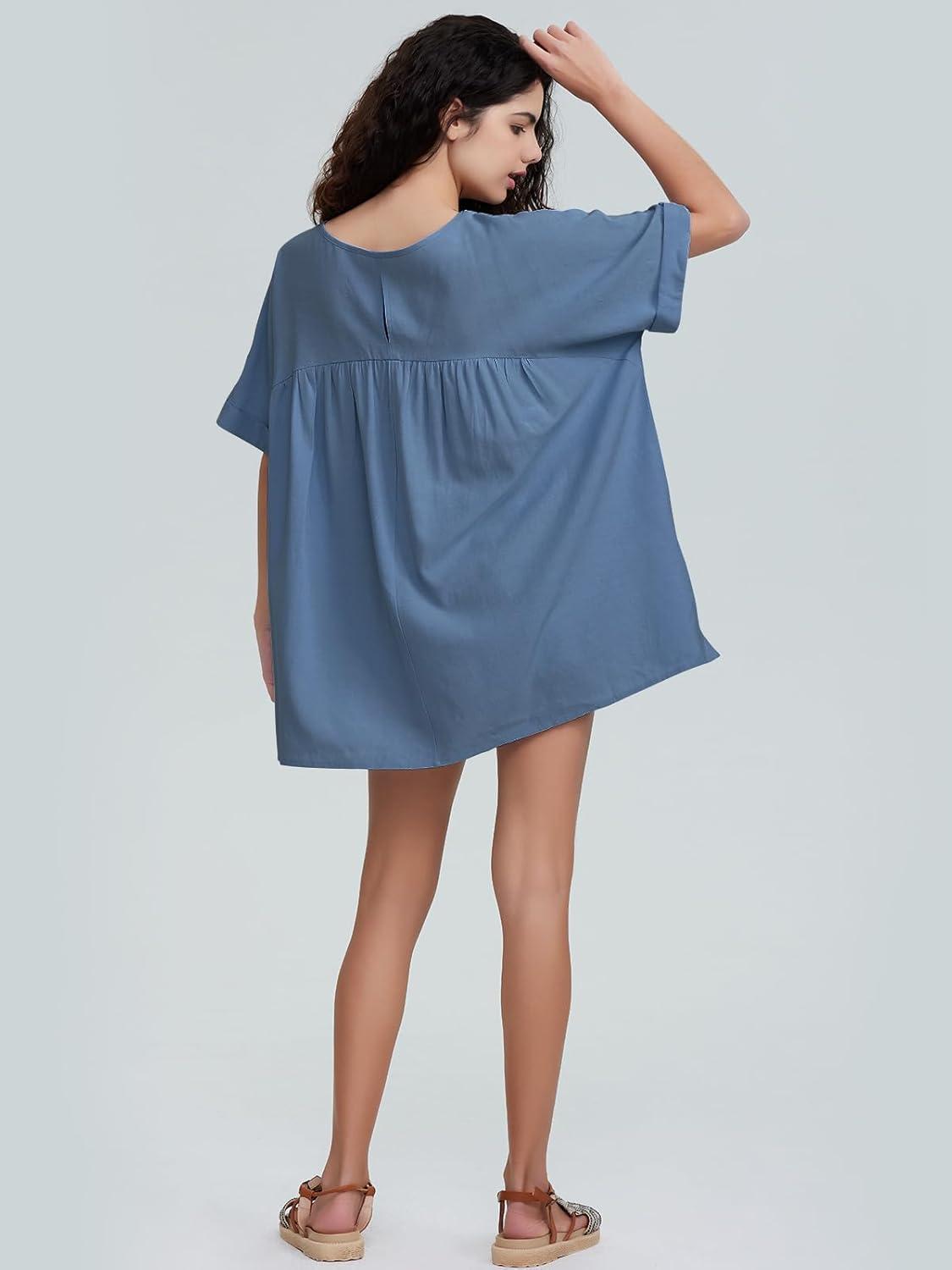 EXLURA Womens Short Sleeve Summer Tops Casual Loose Maternity Babydoll Peplum Tops Oversized Shirts Tunic 2025(Navy Blue)