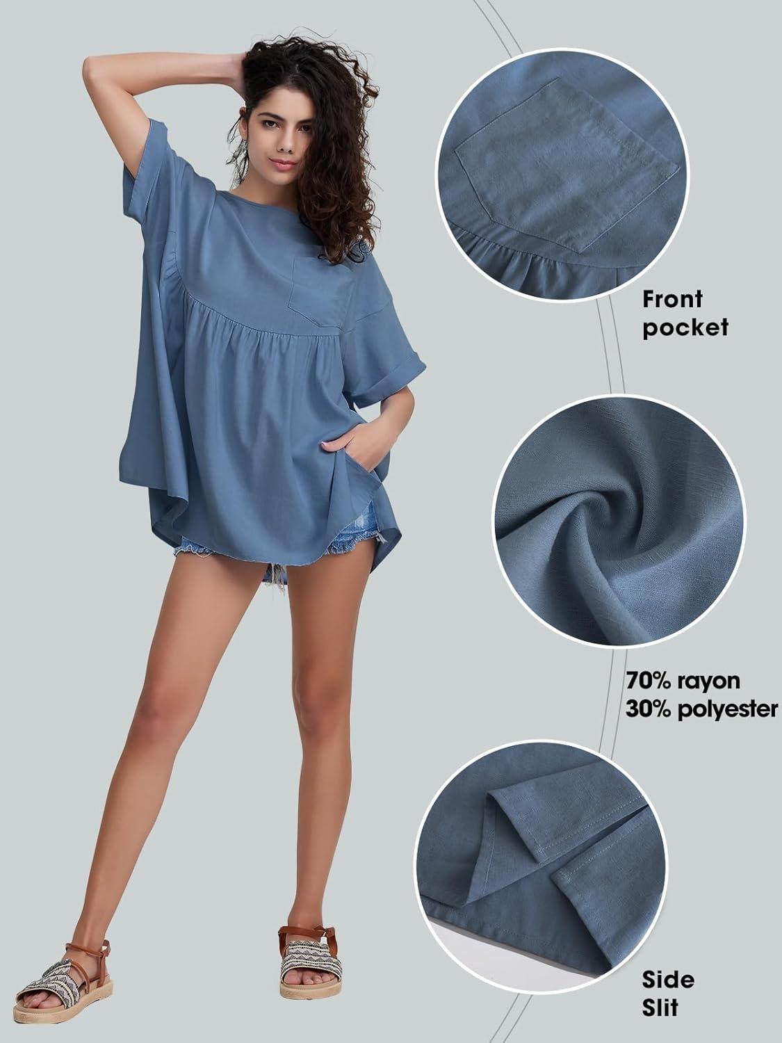 EXLURA Womens Short Sleeve Summer Tops Casual Loose Maternity Babydoll Peplum Tops Oversized Shirts Tunic 2025(Light Grey)