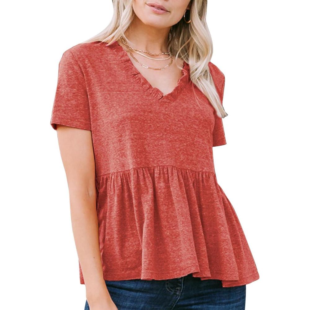 EXLURA Women’s Summer Crop Babydoll Peplum Tops Cute V Neck Short Sleeve Business Casual Trendy T Shirts Beach Vacation 2026(Orange Red)